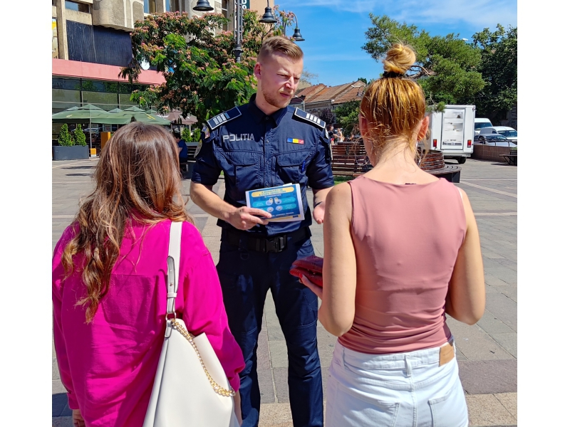 Astfel, polițiștii de la prevenire au acționat în cadrul campaniilor preventive „O vară în siguranță” și „Împreună pentru o comunitate mai sigură!”, fiind prezenți la festivalurile organizate în județul Bihor. De asemenea, acțiunile au vizat și turiștii prezenți pe perioada sezonului estival în stațiunile turistice din județ, respectiv Băile Felix, Băile 1 Mai, Padiș, Șuncuiuș.