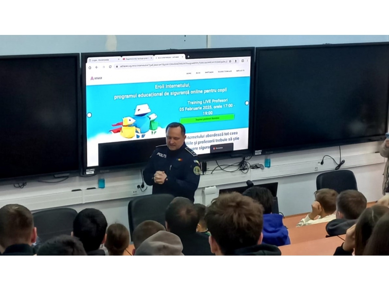 Polițiștii de la prevenire bihoreni i-au învățat pe copii despre siguranța în mediul digital, astfel încât ei să poată explora lumea online cu încredere. Cei mici au aflat cum să comunice responsabil online, să recunoască potențialele fraude, cum să își securizeze parolele, despre agresivitatea pe Internet și despre măsurile pe care trebuie să le ia în momentul în care întâlnesc situații suspecte.