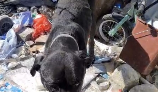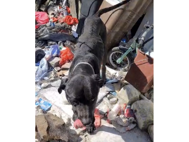 Câinele nu beneficia de adăpost, fiind ținut în curtea imobilului, printre gunoaie, deșeuri menajere, deșeuri din fier sau plastic și alte materiale de construcție.