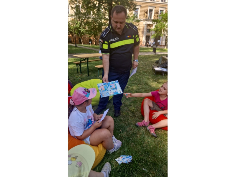Astfel, pe parcursul lunilor iulie și august, săptămânal, în fiecare zi de miercuri, în intervalul orar 10.00 – 13.00, polițiștii de prevenire și cei rutieri din Bihor vor fi prezenți alături de comunitatea locală, cu o serie de activități preventive interactive, structurate pe două categorii de vârstă: de la 5 la 12 ani și de la 13 la 18 ani.