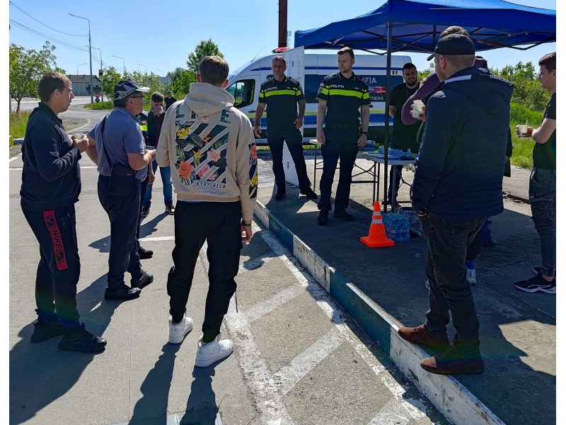 Astfel, polițiștii rutieri bihoreni au oprit în trafic autoturismele care au intrat în țară dinspre P.T.F. Borș, pe Șoseaua Borșului, înainte de intrarea în municipiul Oradea și i-au servit pe conducătorii auto și pe pasagerii acestora cu cafea și apă, oferindu-le astfel prilejul de a se revigora, înainte de a-și continua călătoria.