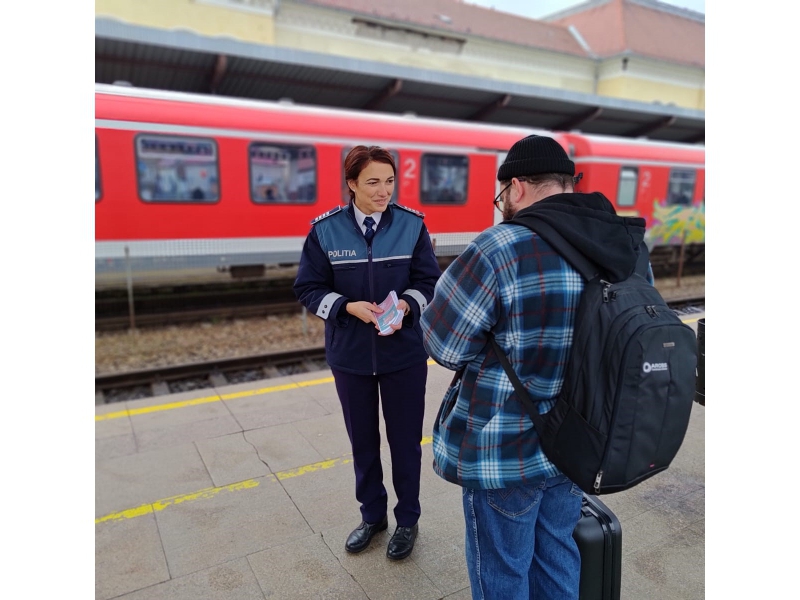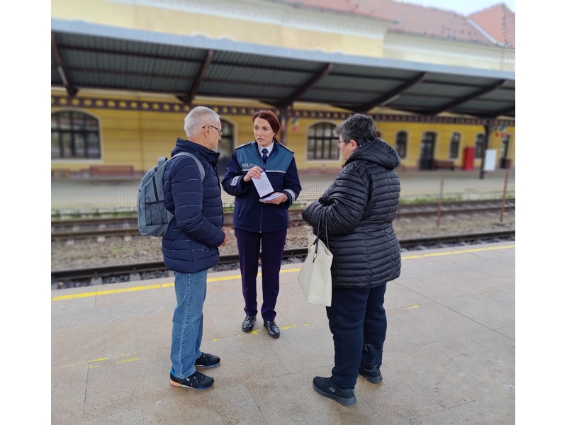 Totodată, polițiștii au interacționat cu cetățenii prezenți pe peronul stației C.F.R. Oradea, dar și cu cei care călătoreau cu trenul și le-au reamintit cum să se protejeze pentru a nu cădea victime infracțiunilor de furt din poșete, din bagaje sau din buzunare. De asemenea, au fost oferite recomandări pentru prevenirea victimizării prin infracțiuni de înșelăciune sau prin intermediul fraudelor online.