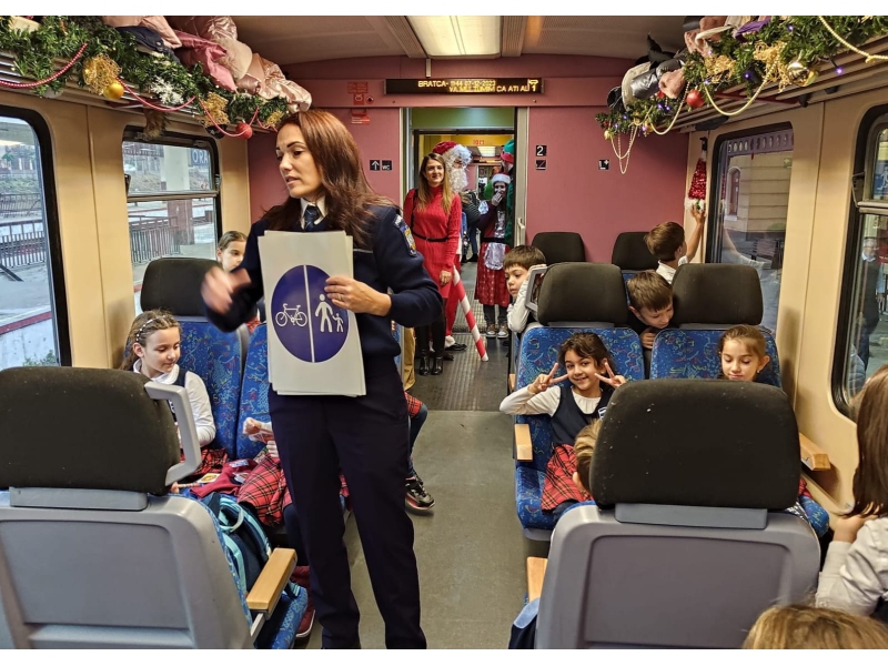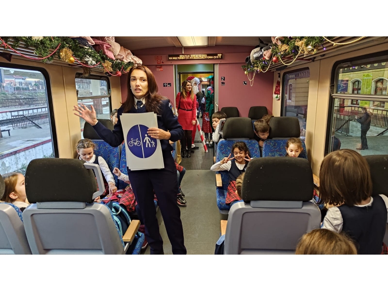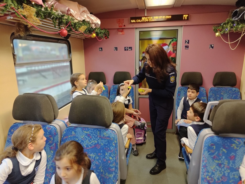 CĂLĂTORIE CU TRENUL LUI MOȘ CRĂCIUN, ALĂTURI DE POLIȚIȘTII DE PREVENIRE BIHORENI
