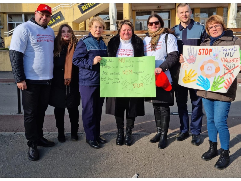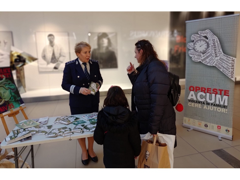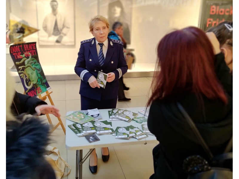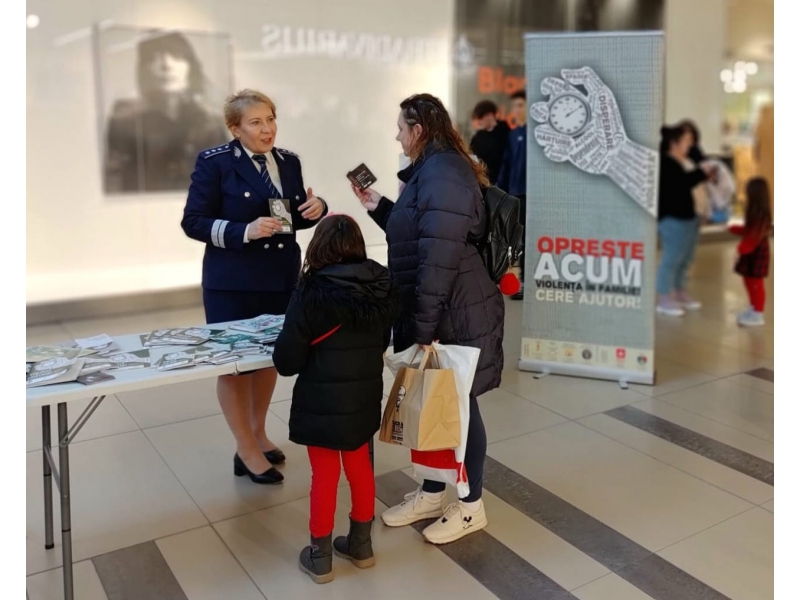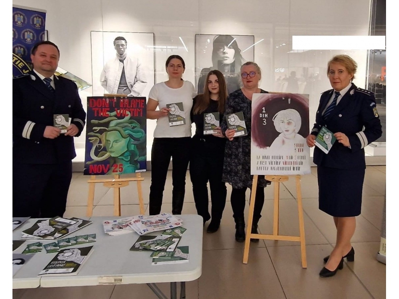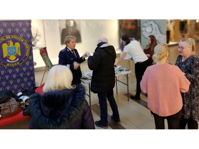Sâmbătă, 25 noiembrie a.c., chiar de Ziua internaţională pentru eliminarea violenţei împotriva femeilor, polițiștii de prevenire bihoreni și partenerii de program au organizat o activitate de informare cu caracter simbolic, în incinta Lotus Center din municipiul Oradea, în cadrul căreia au discuat cu cetățenii despre semnificația acestei zile, despre modalităţile concrete de semnalare a cazurilor de violenţă în familie şi despre instituţiile şi organizaţiile care pot oferi sprijin victimelor acestui fenomen, subliniind faptul că, pentru a primi ajutor, victimele trebuie să iasă din anonimat și să reclame violențele suferite.