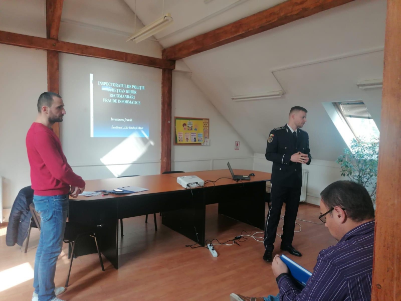 Astfel, au fost derulate întâlniri cu reprezentanți și angajați ai unor societăți comerciale din municipiul Oradea, cu persoane de vârsta a treia, cu studenți și profesori, activități în cadrul cărora au fost prezentate detalii despre cele mai noi moduri de operare privind fraudele cu investiții, despre ce sunt aceste fraude, cum se manifestă, cum pot afecta utilizatorii și cum ne putem proteja de ele.