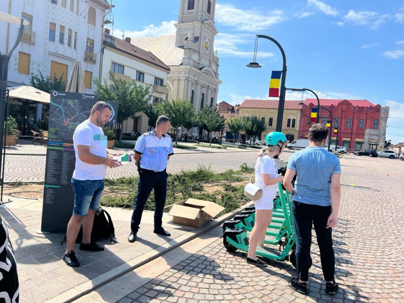 Joi, 3 august a.c., polițiștii Serviciului Rutier din cadrul Inspectoratului de Poliție Județean Bihor au fost prezenți în Piața Unirii din municipiul Oradea, unde au defășurat o campanie preventivă, dedicată creșterii siguranței rutiere a utilizatorilor de trotinete electrice și prevenirii victimizării acestora sau a altor participanți la trafic prin accidente rutiere.