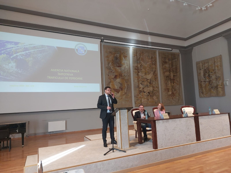 Totodată, pe cea de-a treia componentă, traficul de persoane, au susținut prezentări specialiști în domeniu, respectiv reprezentanți ai Agenției Naționale Împotriva Traficului de Persoane (dl. comisar șef de poliție Marius BURCEA, șef Serviciu Prevenire în cadrul A.N.I.T.P., dl. comisar șef de poliție Laurențiu DINCĂ, coordonator al Centrului Regional Timișoara – A.N.I.T.P.), precum și reprezentanți ai Fundației „People to people” (d-na Andreea PONTOȘ), prezentările celor trei teme abordate fiind urmate, la final, de sesiuni de întrebări și discuții cu publicul.