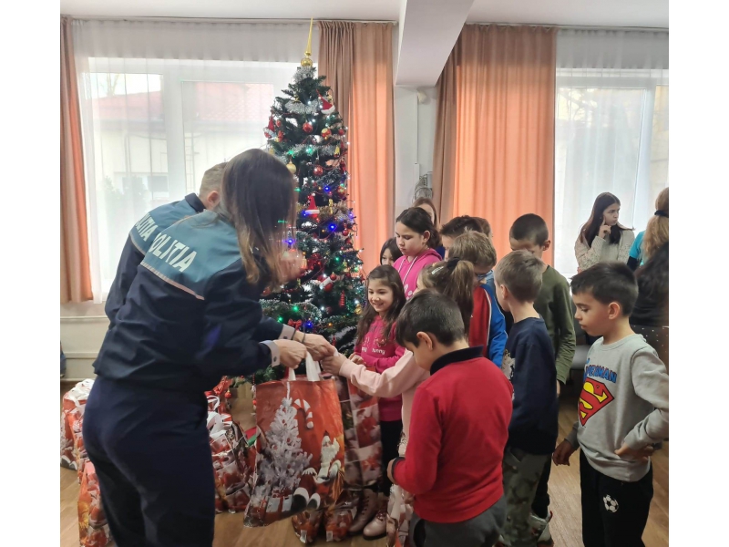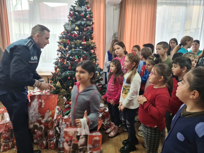 Polițiștii bihoreni de la siguranță școlară au adus bucurie în sufletele celor 46 de copii din familii defavorizate, din cadrul Centrului de Zi aparținând Direcției de Asistență Socială Oradea, cărora le-au oferit cadouri, în preajma sărbătorii Nașterii Domnului (anexăm foto).