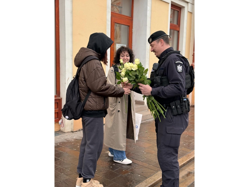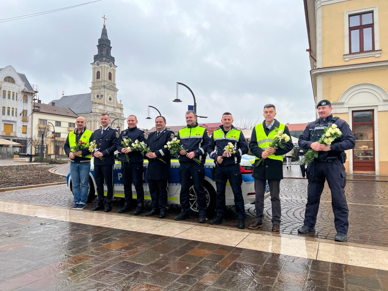 De 8 martie, femeile au fost întâmpinate cu flori și mesaje preventive, de polițiști, jandarmi și reprezentanții în teritoriu ai A.N.A., din județul Bihor.