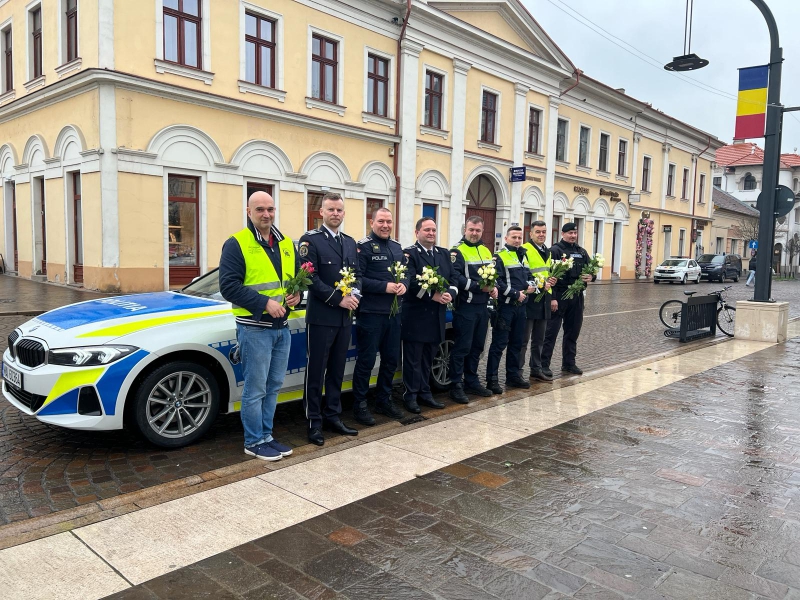 De asemenea, la primele ore ale dimineții, în localitatea Săcueni, județul Bihor, doamnele și domnișoarele prezente în trafic, în calitate de conducător auto sau de pasager, au fost întâmpinate de polițiștii din Săcueni cu flori, urări calde și recomandări prețioase.