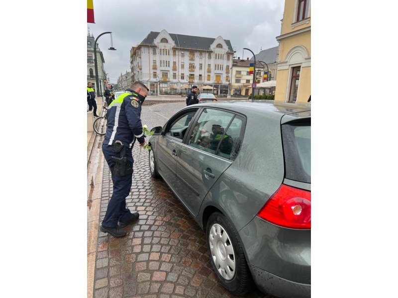 Acțiunile au continuat în Piața Unirii din municipiul Oradea, unde, începând cu ora 11.30, doamnele și domnișoarele aflate în trecere au fost așteptate cu flori, de polițiștii rutieri și de prevenire, alături de jandarmi și reprezentanții A.N.A., pentru a le aduce, astfel, zâmbetul pe buze.