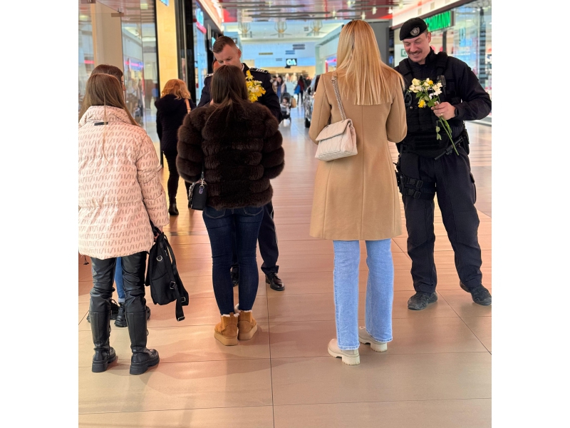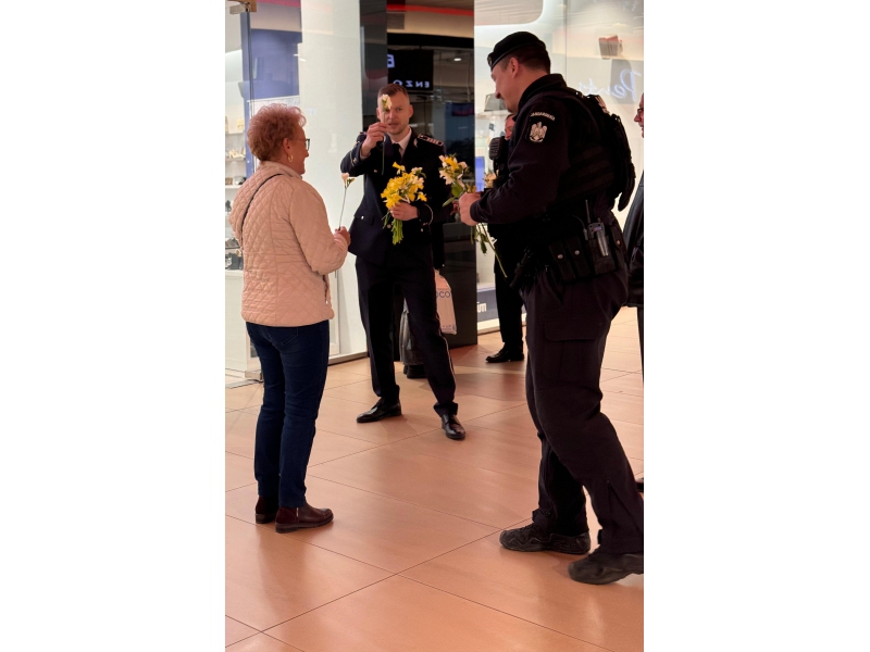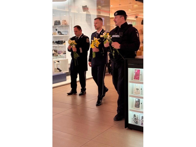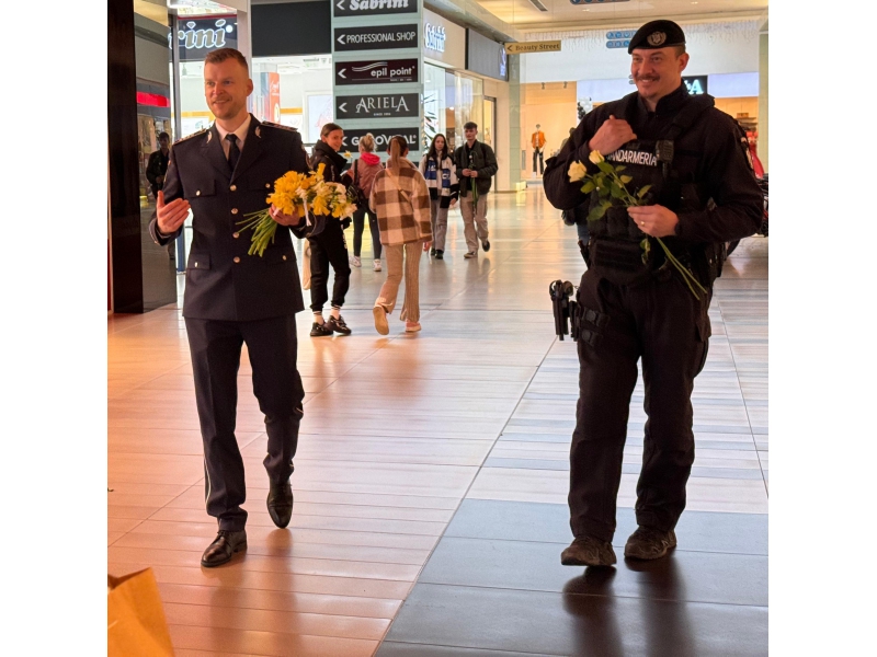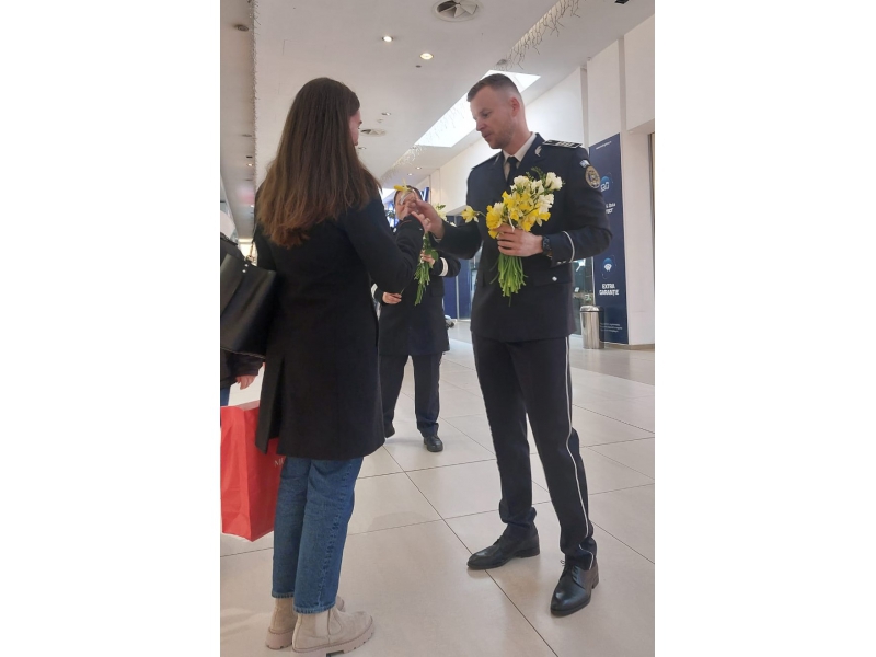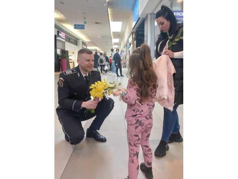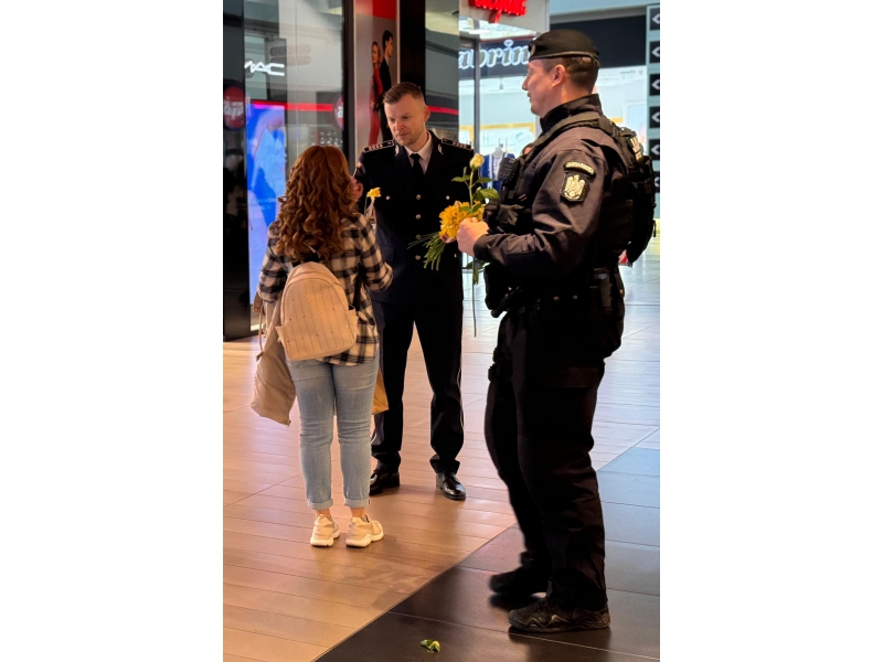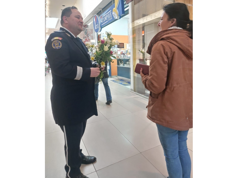 Totodată, echipele mixte ale structurilor teritoriale ale M.A.I. au continuat acțiunile de Ziua Internaţională a Femeii într-un centru comercial din municipiul Oradea, unde, de asemenea, doamnele și domnișoarele au fost felicitate, cu flori și urări calde.