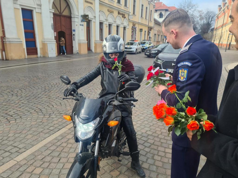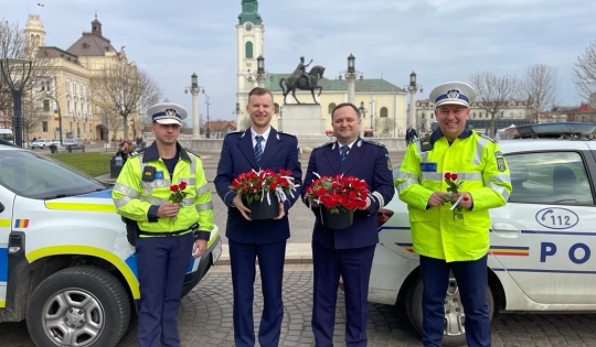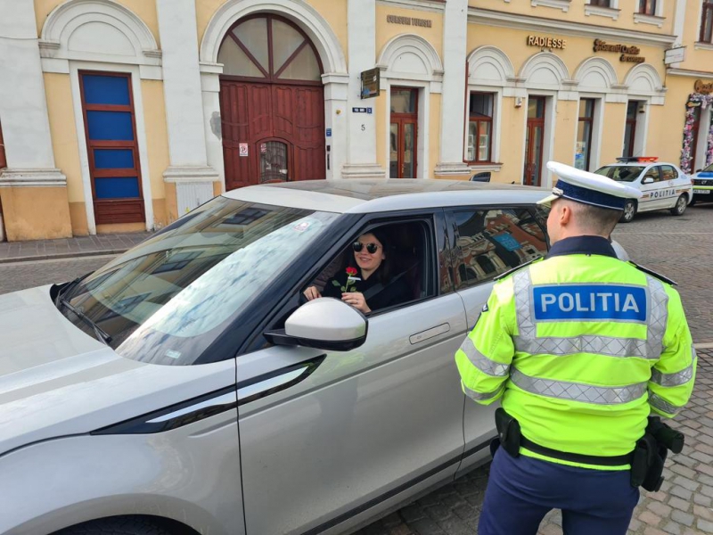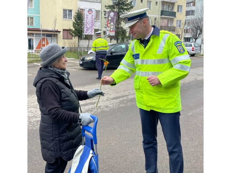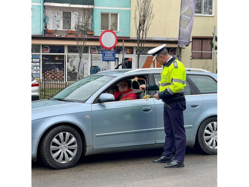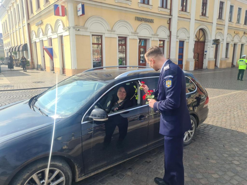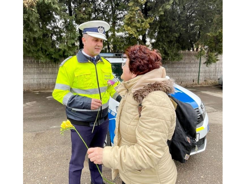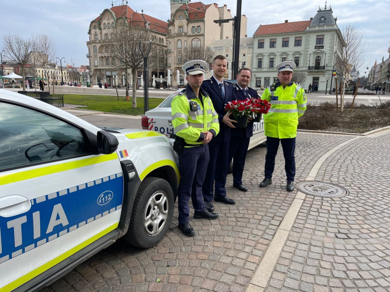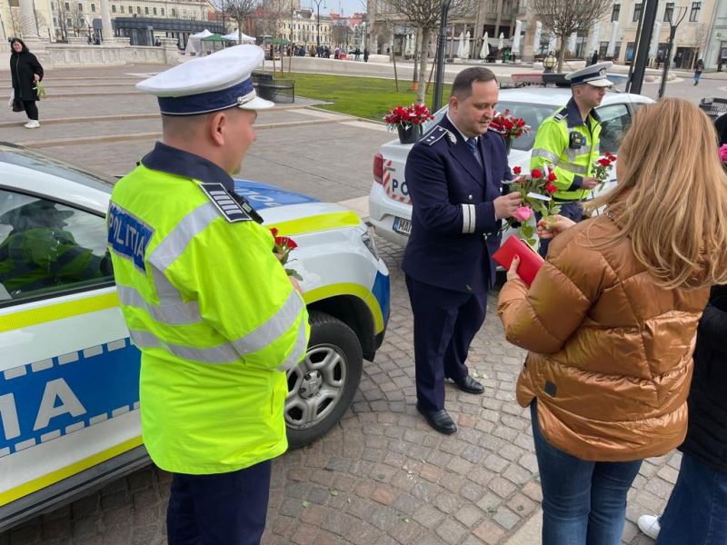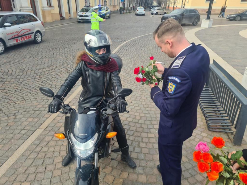 De 8 martie, femeile au fost întâmpinate cu flori și mesaje preventive, de polițiștii bihoreni.