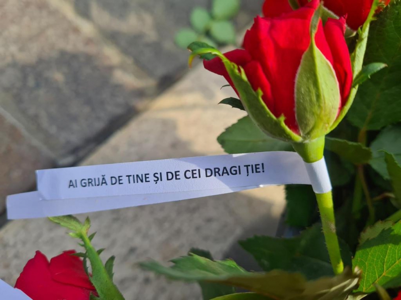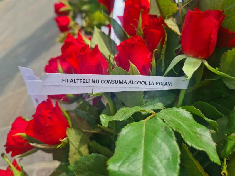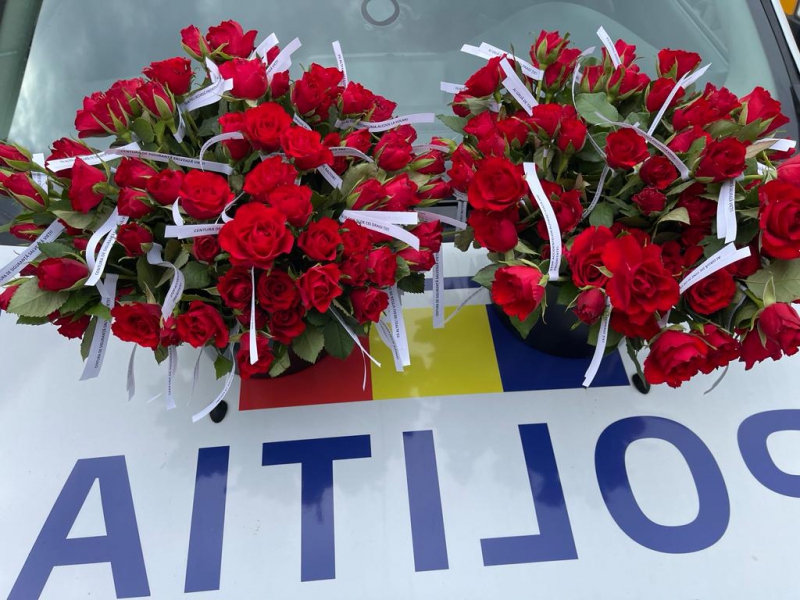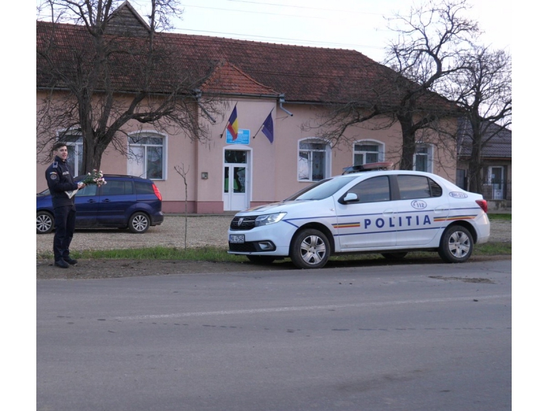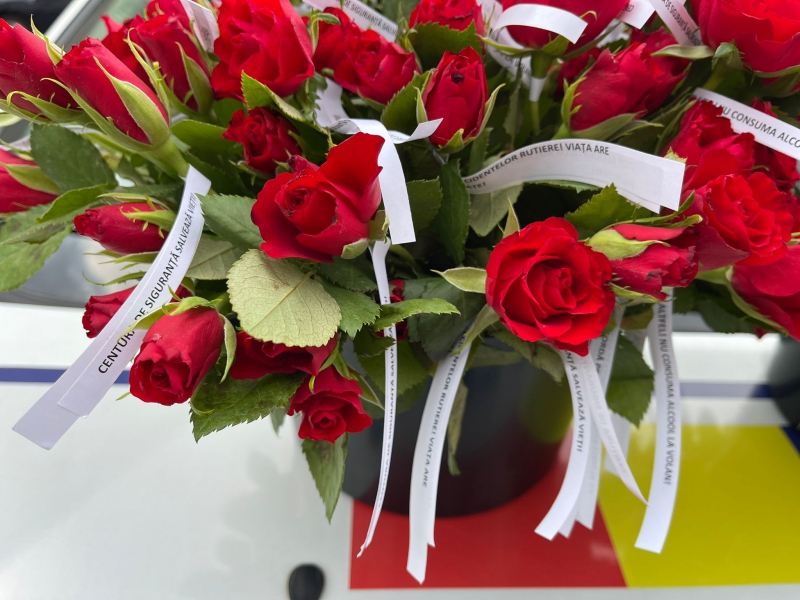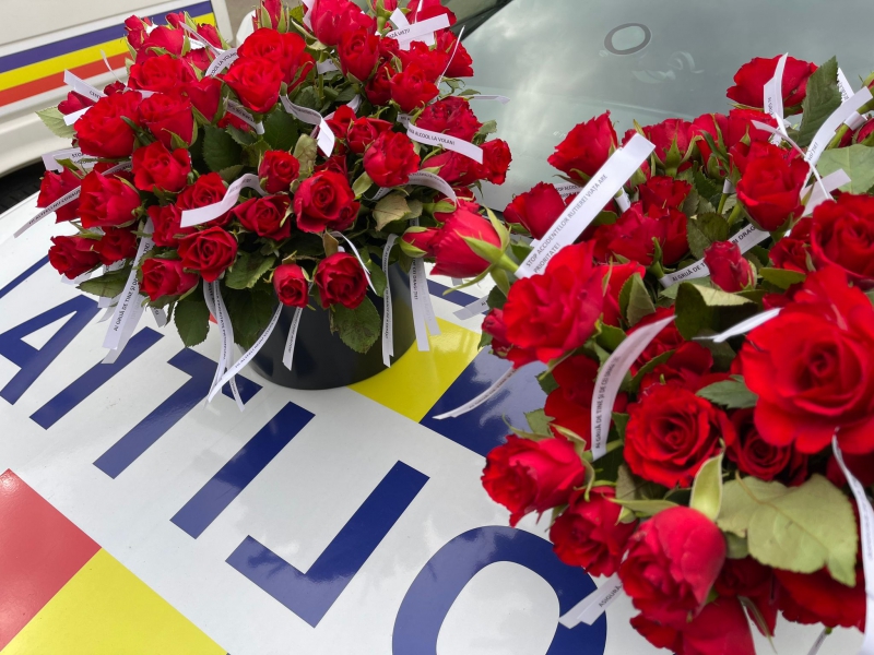 Florile oferite în dar de polițiștii bihoreni au avut atașate mesaje preventive scurte, dar de impact (anexăm foto).