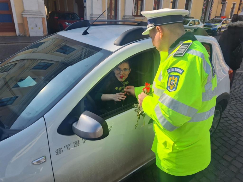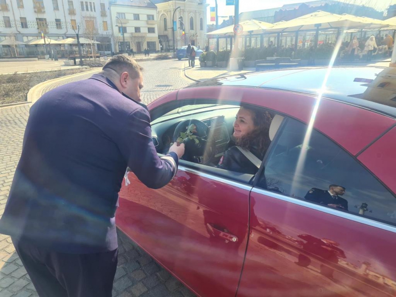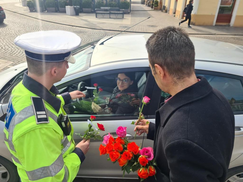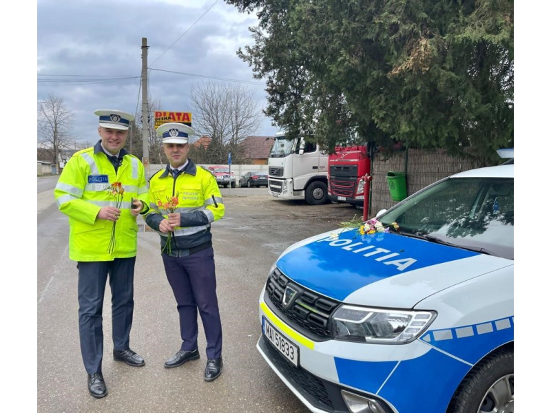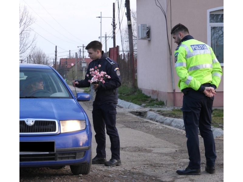 La primele ore ale dimineții, în localitățile bihorene Aleșd și Săcueni, doamnele și domnișoarele prezente în trafic, în calitate de conducător auto sau de pasager, au fost întâmpinate de polițiștii bihoreni cu flori, urări calde și recomandări prețioase.