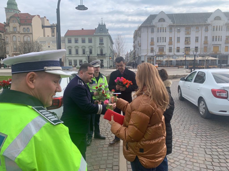 Miercuri, 8 martie a.c., continuând tradiţia anilor precedenţi, poliţiştii Compartimentului de Prevenire a Criminalităţii împreună cu polițiștii Biroului Drumuri Naționale și Europene – Serviciul Rutier, polițiștii Biroului Rutier – Poliția Municipiului Oradea și din cadrul Inspectoratului de Poliţie Judeţean Bihor, alături de reprezentanții Asociației pentru Educație și Siguranță Rutieră au acţionat în trafic, pe raza Municipiului Oradea și pe drumurile naționale sau județene din Bihor, pentru a oferi flori doamnelor şi domnişoarelor participante la trafic, marcând astfel, simbolic, Ziua Internaţională a Femeii.