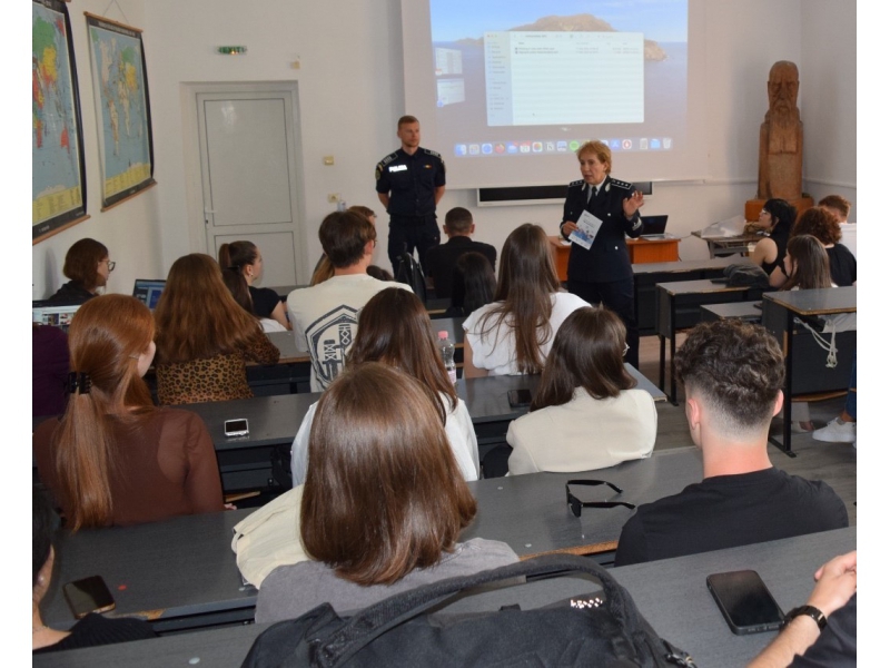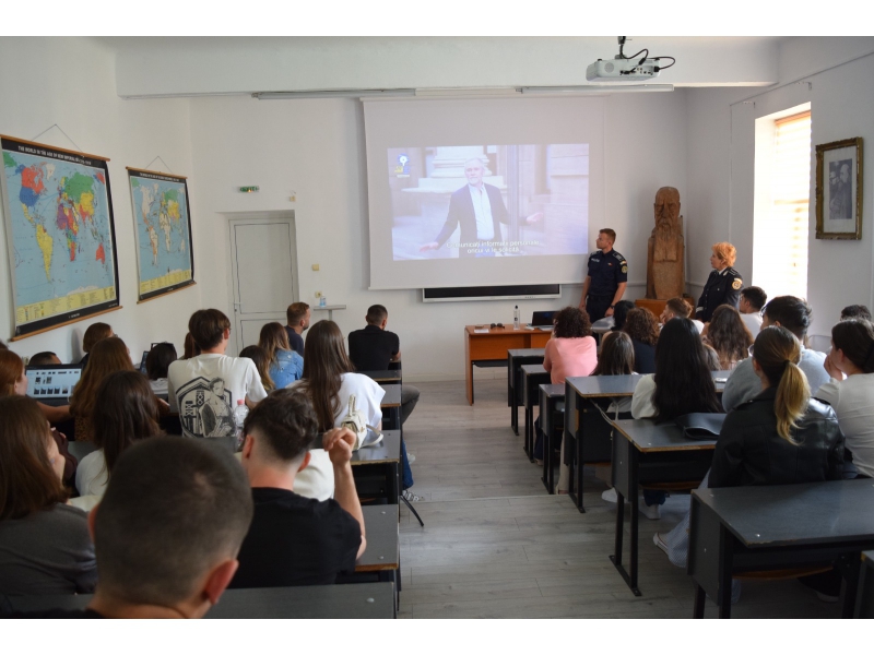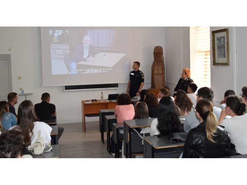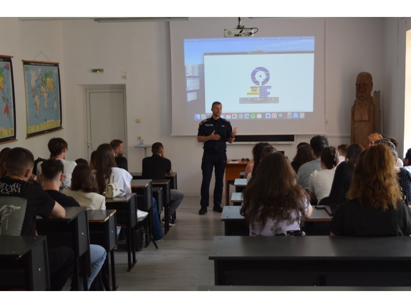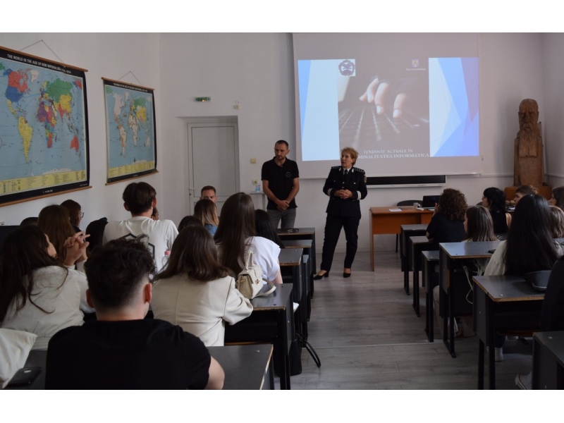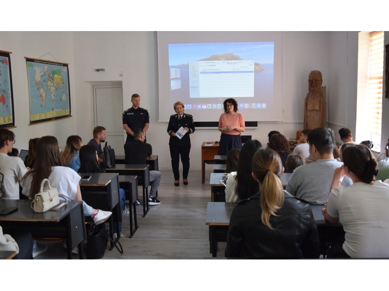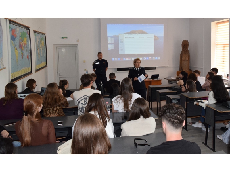 Astfel, cei peste 100 de studenții,au fost informați de polițiști despre infracțiunile cu instrumente de plată electronică și despre modalitățile de prevenire a acestora, despre infracțiunile contra confidențialității și integrității datelor cu caracter personal, cât și despre pornografia infantilă și fraudele cu investiții financiare.