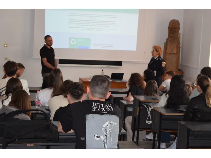 Polițiștii bihoreni au interacționat cu studenții pe tema siguranței acestora atunci când fac cumpărături online, despre cum să-și securizeze cardurile bancare, parolele pentru conturile on-line, dar și despre diferite tipuri de fraude online, cărora le pot cădea victime.