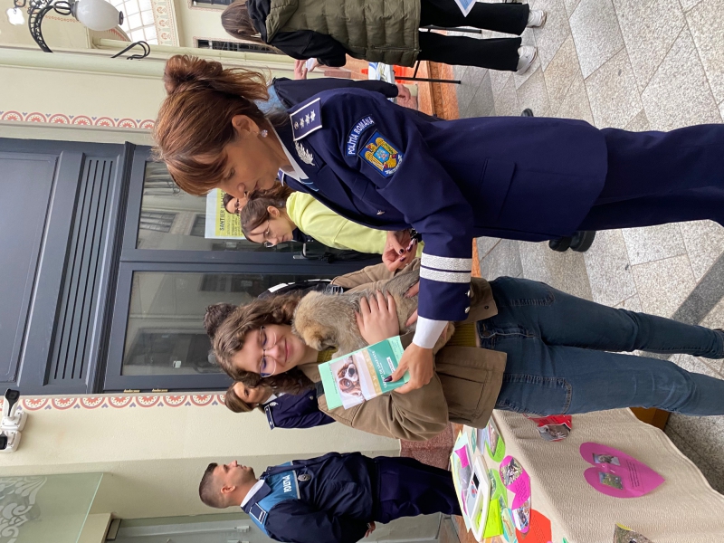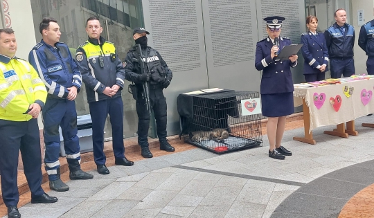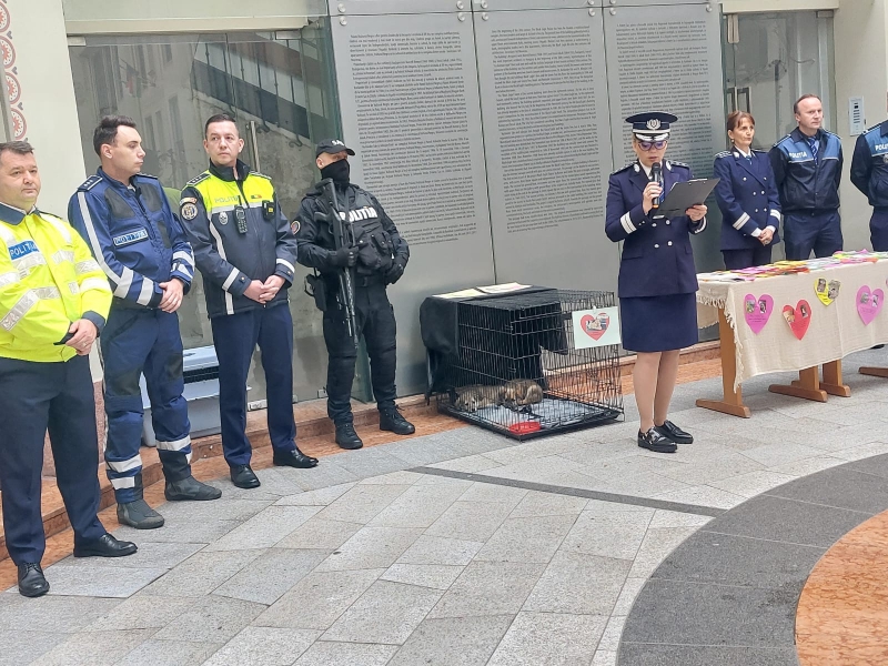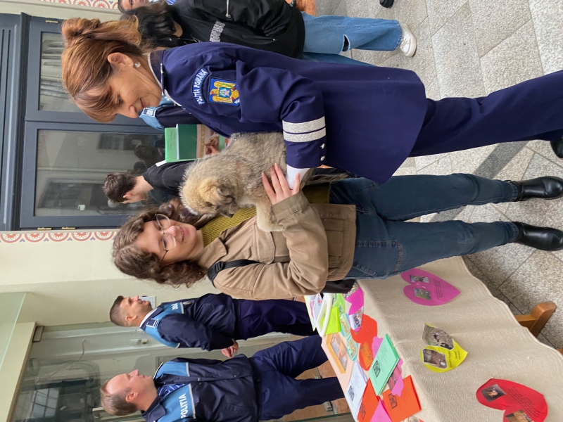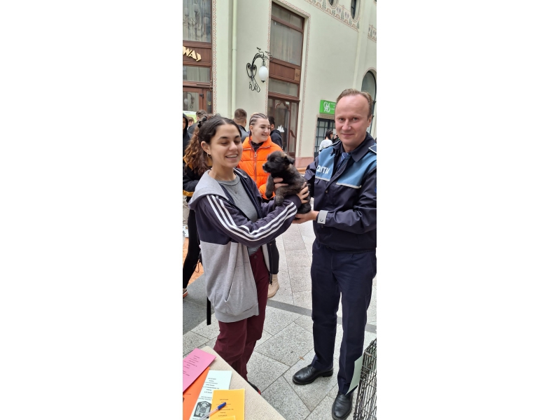 În eveniment au fost implicați și polițiștii de la protecția animalelor, care, pe lângă detaliile furnizate publicului cu privire la natura activității desfășurate, în sprijinul necuvântătoarelor, i-au surprins plăcut pe cei prezenți, prin prezentarea a trei cățeluși, de doar câteva săptămâni, salvați recent de polițiști, după ce au fost despărțiți de mamă și abandonați într-un adăpost, care au fost oferiți spre adopție.