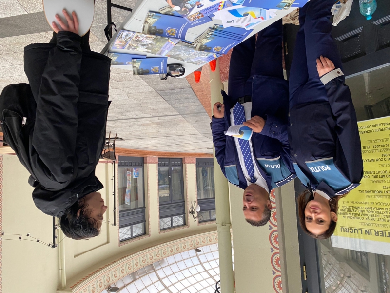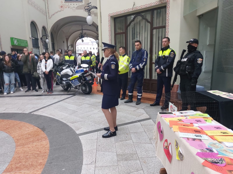 Vineri, 27 octombrie a.c., în intervalul orar 10.00 – 13.00, în contextul derulării, la nivelul Inspectoratului General al Poliției Române, a procedurii pentru admiterea în școlile de agenți de poliție, respectiv în Școala de Agenți de Poliție „Vasile Lascăr” Câmpina și în Școala de Agenți de Poliție „Septimiu Mureșan” Cluj – Napoca, Inspectoratul de Poliție Județean Bihor a organizat, în Pasajul Vulturul Negru din municipiul Oradea, un eveniment public, destinat celor care vor să îmbrățișeze profesia de polițist.