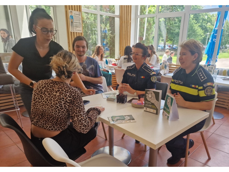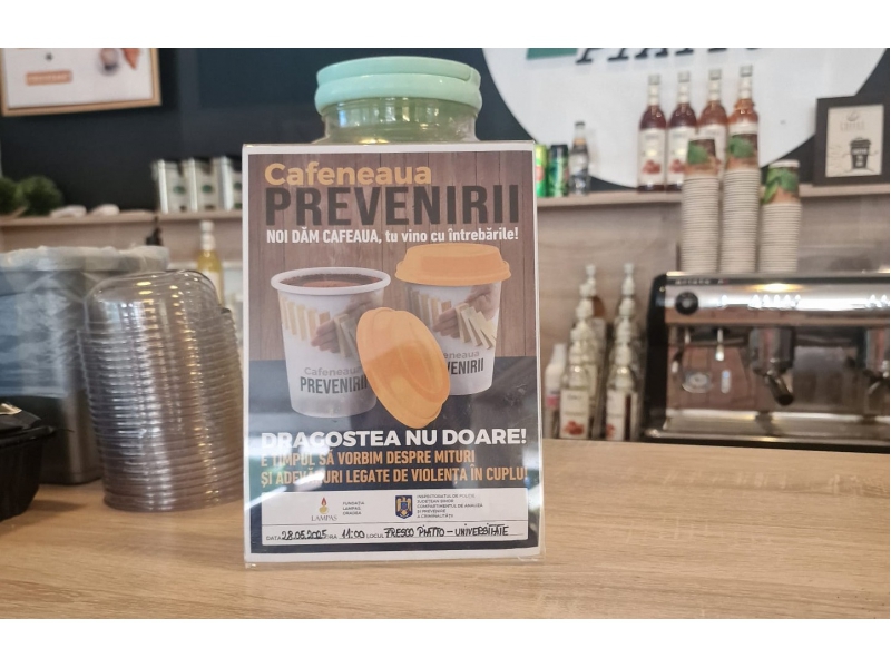 Astfel, în intervalul orar 11.00 – 13.00, polițiștii Compartimentului de Analiză și Prevenire a Criminalității, împreună cu reprezentanții Fundaţiei Lampas au fost prezenți în campusul Universității din Oradea, unde au organizat evenimentul „Cafeneaua prevenirii”. În acest context, polițiștii de prevenire din Bihor au interacționat cu studenții pe tema prevenirii violenței domestice, într-un cadru informal.