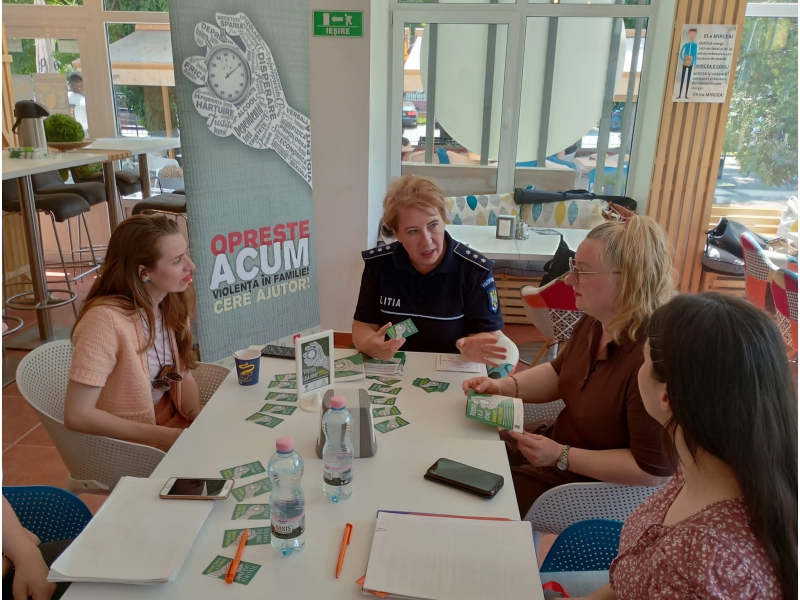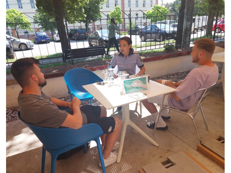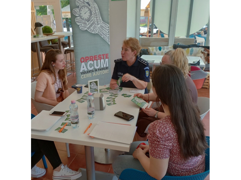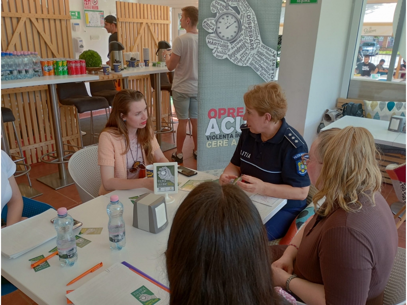 Cei prezenți au avut ocazia să servească o cafea sau o băutură răcoritoare și, în același timp, să primească informații utile de la polițiștii bihoreni, despre formele de manifestare a violenței în cuplu, cu privire la instituțiile implicate în gestionarea acestui fenomen, precum și despre drepturile și măsurile prevăzute de lege pentru asigurarea protecției victimelor violenței în familie (anexăm foto).