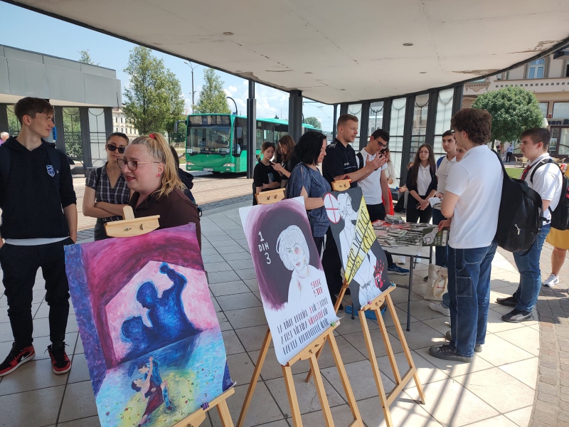 În eveniment sunt implicați și elevii Liceului de Artă Oradea, care prezintă, într-o expoziție de desene, creațiile lor cu privire la violența în familie.