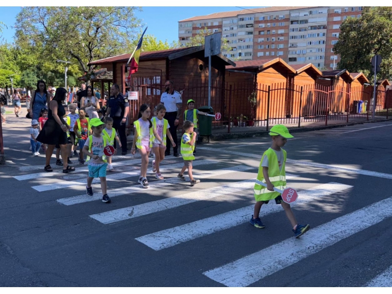 Totodată, la trecerea de pietoni din proximitate, sub atenta observare a polițiștilor, cei mici au avut ocazia să demonstreze practic modul în care și-au însușit regulile rutiere privind traversarea carosabilului în siguranță.
