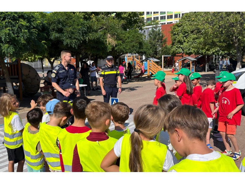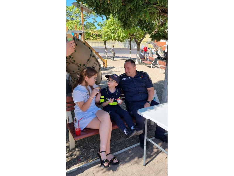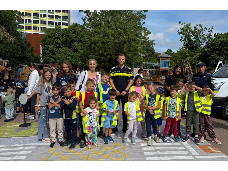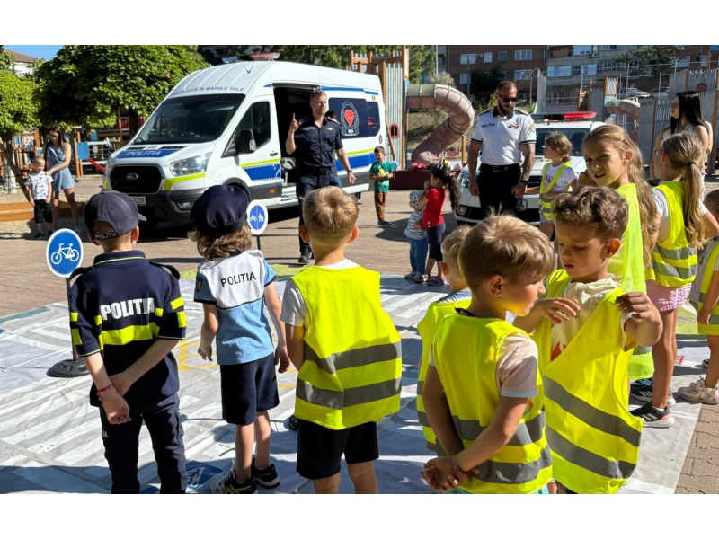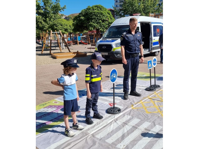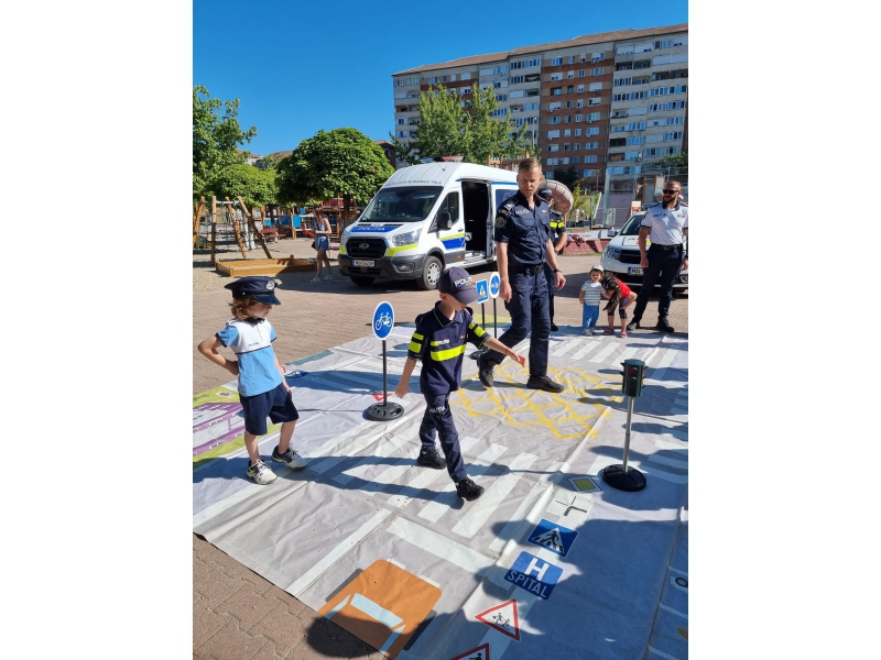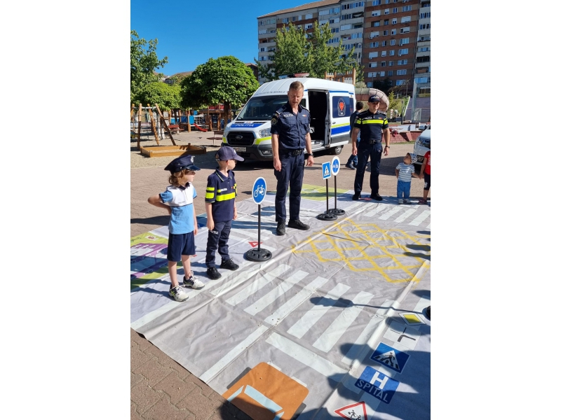 De asemenea, cei mici au avut la dispoziție covorul rutier, mini indicatoare rutiere și o autospecială de poliție, precum și alte surprize pregătite de polițiști special pentru ei.