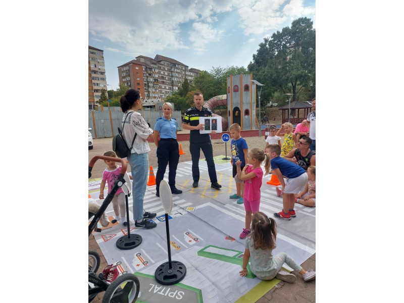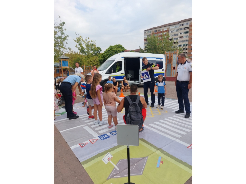 Comportamentul preventiv în trafic este un alt subiect abordat de polițiștii din Bihor în cadrul acțiunii preventive. În cadrul atelierelor de siguranță rutieră, copiii prezenți în Orășelul Copiilor au învățat de la polițiști principalele reguli de circulație, iar apoi au avut ocazia de a pune în practică ce au învățat, cu sprijinul covorului rutier și a mini indicatoarelor rutiere, sub atenta supraveghere și îndrumare a polițiștilor. Au fost constituite mini patrule rutiere, copiii demonstrând, cu entuziasm, că și-au însușit regulile de circulație și știu să le aplice în mod corect.