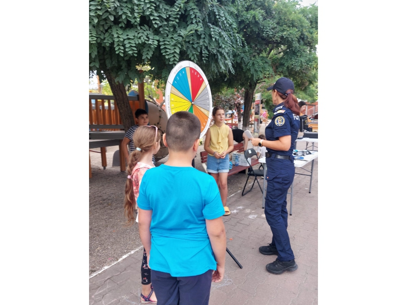 Copiii, implicați cu entuziasm în jocurile și concursurile preventive organizate de polițiști, au fost răsplătiți cu premii și legitimații de „Polițist pentru o zi”.