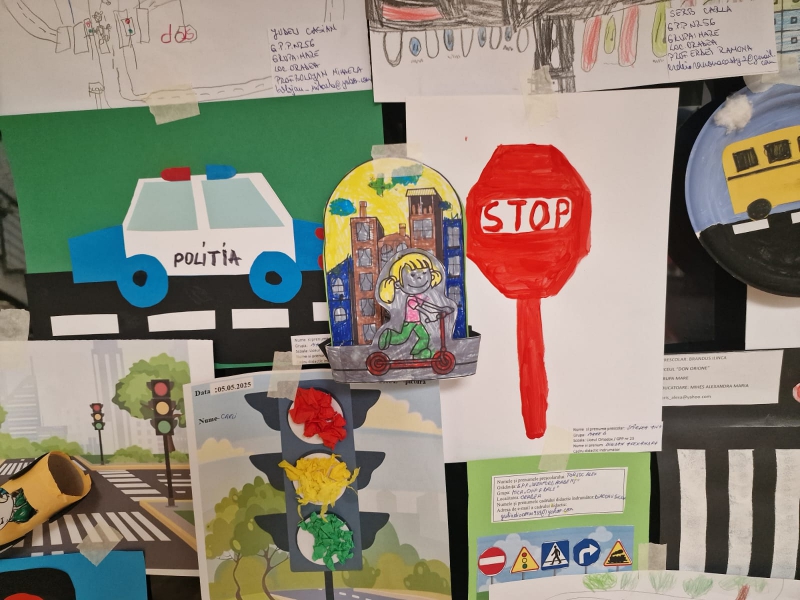 Evenimentul din Orășelul Copiilor a inclus și o expoziție de desene realizate de copii, care reflectă, în mod creativ și ingenios, modul în care aceștia percep siguranța rutieră.