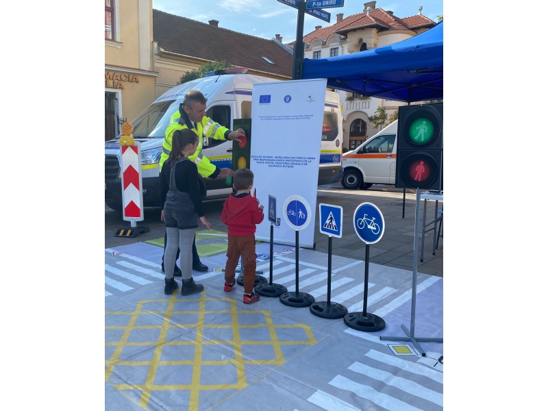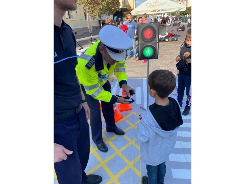 În acest context, în Piața Unirii din municipiul Oradea, polițiștii de prevenire, cei rutieri și reprezentanții în teritoriu ai A.N.A. au organizat patru ateliere pe teme de educaţie rutieră, siguranţă pe internet, siguranță acasă, pe stradă și la locul de joacă.