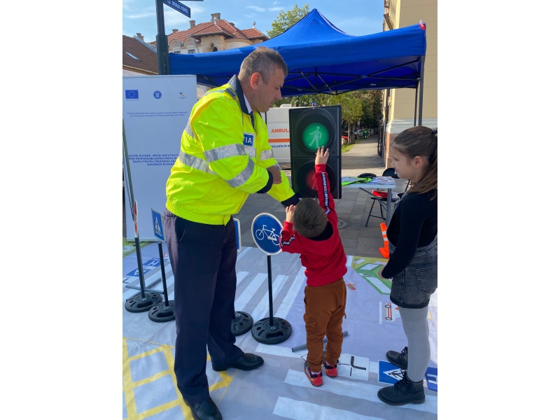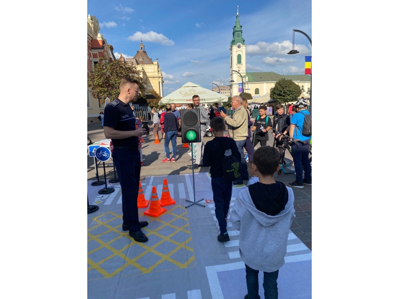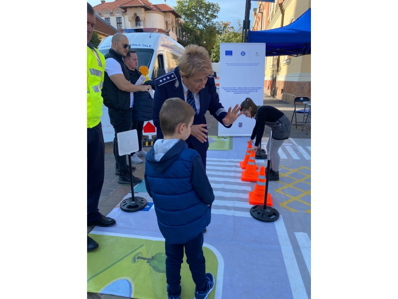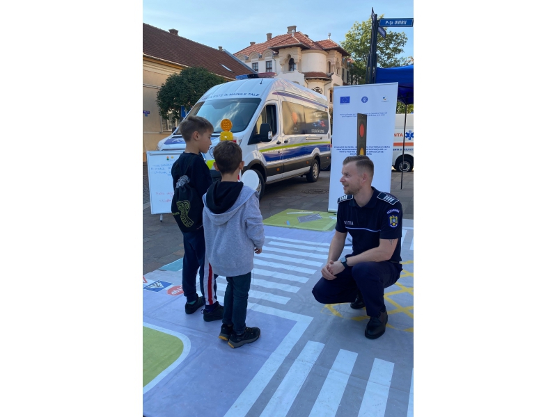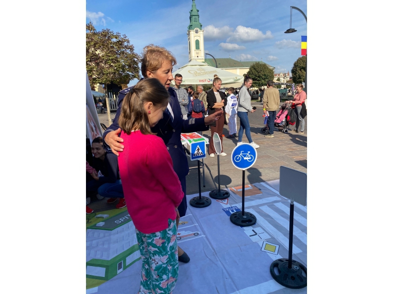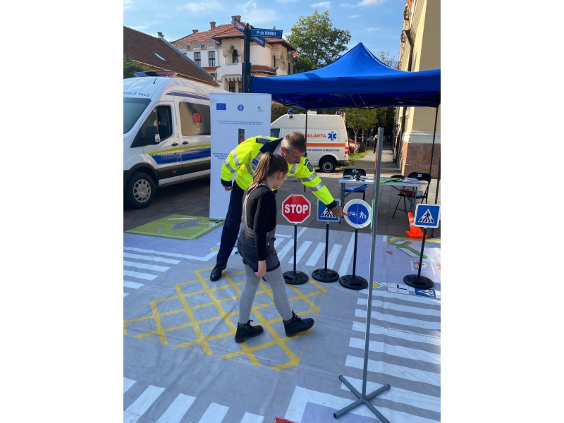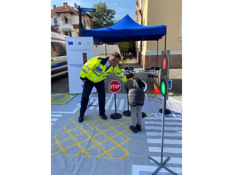 Tot în Piața Unirii din municipiul Oradea, polițiștii bihoreni au pus la dispoziția publicului laboratorul mobil de siguranță rutieră, menit să susțină activitatea polițiștilor rutieri în campaniile pentru creșterea gradului de siguranță rutieră, prin responsabilizarea cetățenilor, în calitate de participanți la trafic, fie că sunt pietoni sau conducători auto.
