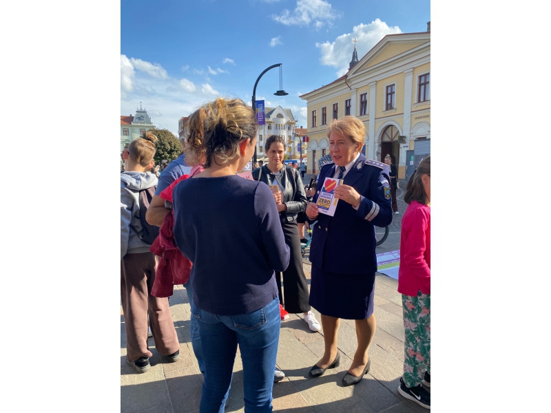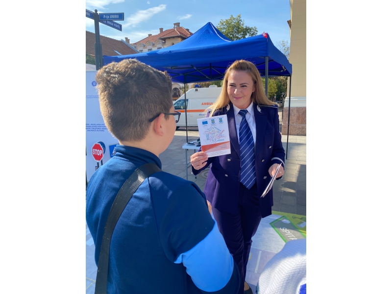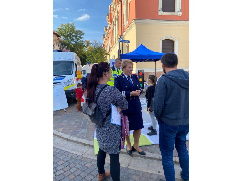 Polițiștii de prevenire și cei rutieri bihoreni, dar și reprezentanții Centrului Regional de Prevenire, Evaluare și Consiliere Antidrog Oradea continuă acțiunile prezentive în Piața Unirii din Oradea pe parcursul zilei de duminică, 16 octombrie, în zona Palatului Episcopal Greco – Catolic.