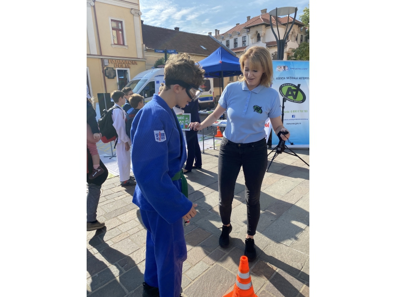În acest context, cei mici și cei mari au avut ocazia să participe la un experiment, care presupune parcurgerea unui traseu cu obstacole, purtând ochelari speciali, ce distorsionează realitatea și simulează efectele psihomotorii ale consumului de alcool sau droguri.