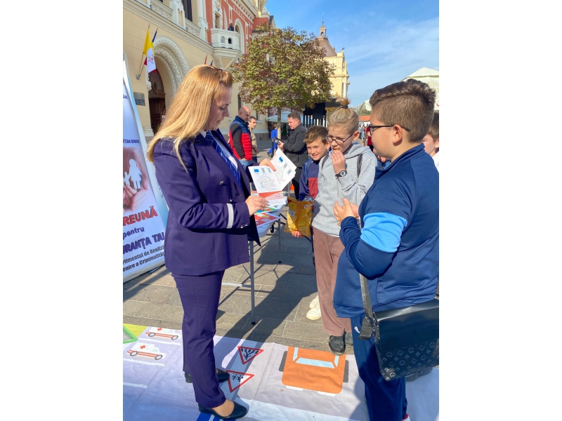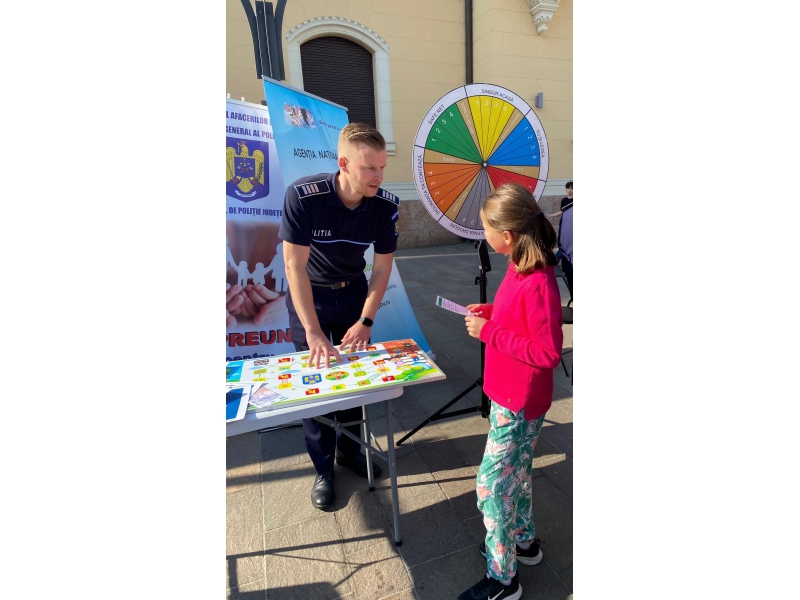 Polițiștii de prevenire și cei rutieri bihoreni, alături de reprezentanții A.N.A. au organizat jocuri și concursuri preventive în Piața Unirii din Oradea, prin care au informat tinerii, adolescenții și adulții despre cum să prevină victimizarea acasă, pe stradă sau pe internet, cum să circule în siguranță, dar și despre efectele nocive ale consumului de droguri sau alcool.
