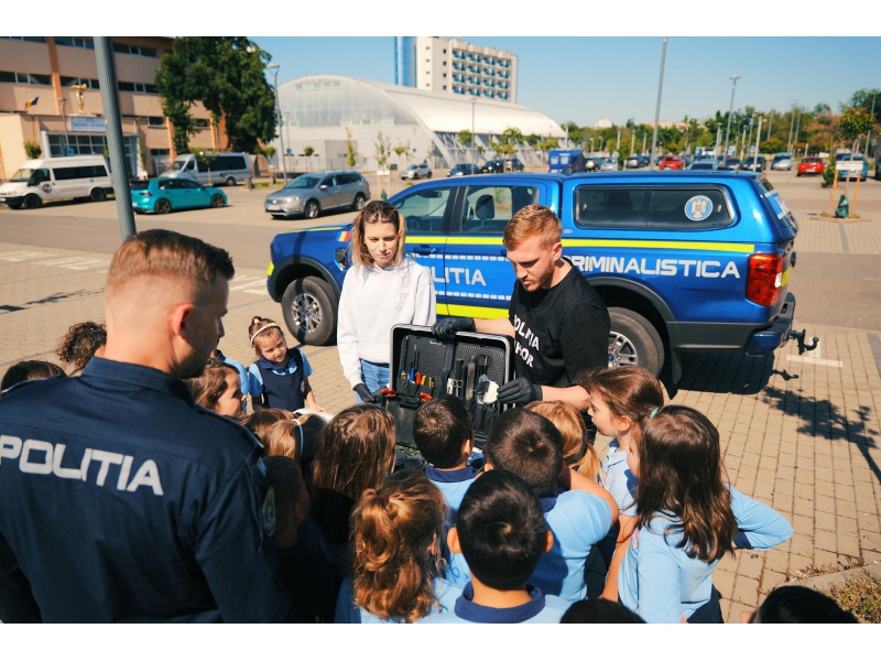 De asemenea, elevii au beneficiat de prezența Laboratorului Mobil Criminalistic, în cadrul căruia, copiii au avut ocazia să învețe din tainele profesiei de polițist criminalist.