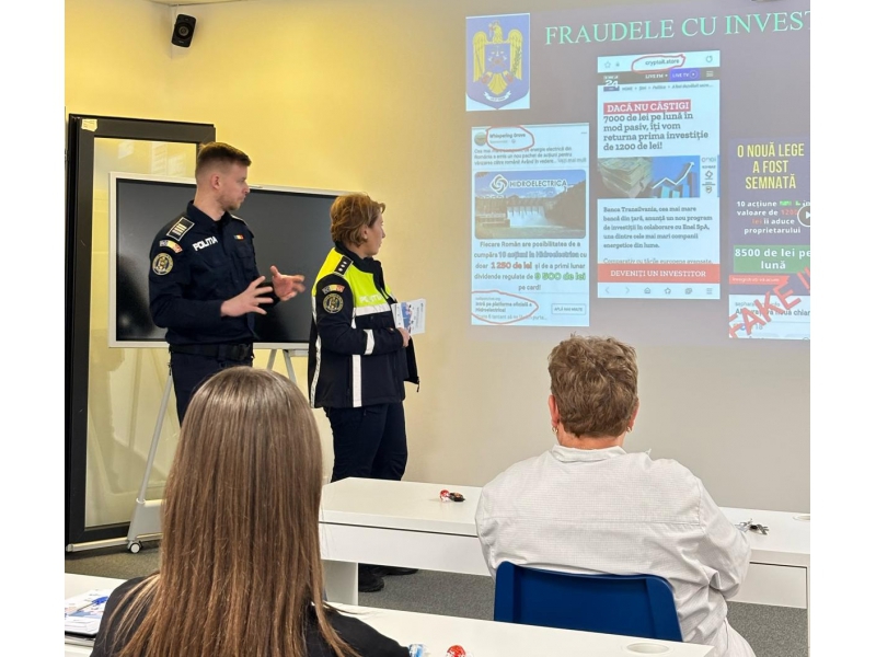 Peste 1500 de angajați ai unor societăți comerciale, studenți și persoane de vârsta a treia, informați de polițiștii din Bihor despre cum să prevină victimizarea prin fraude on-line.