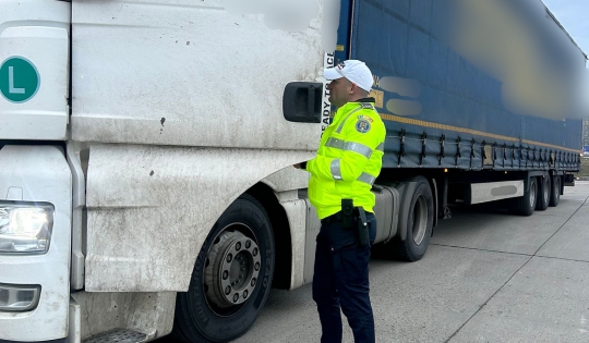 Peste 200 de vehicule de transport marfă și persoane controlate de polițiștii din Bihor, în cadrul operațiunii europene „Truck & Bus” – sancțiuni de peste 50.000 de lei, în 24 de ore.