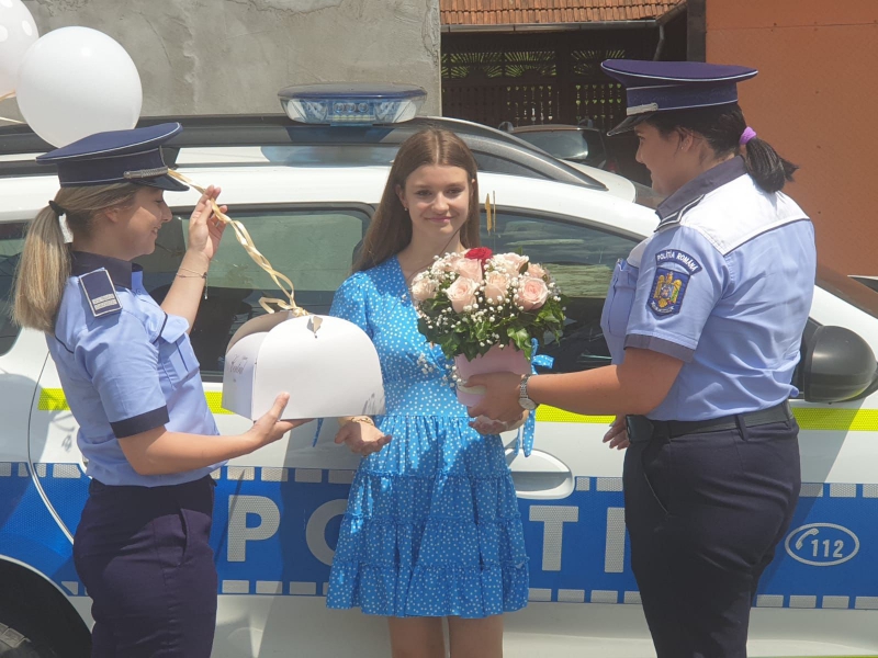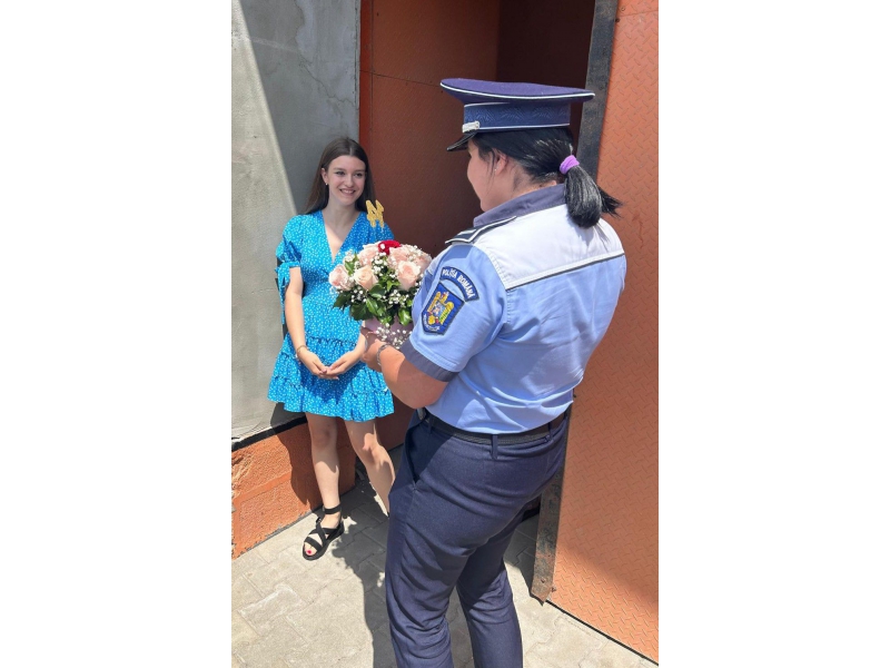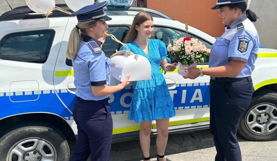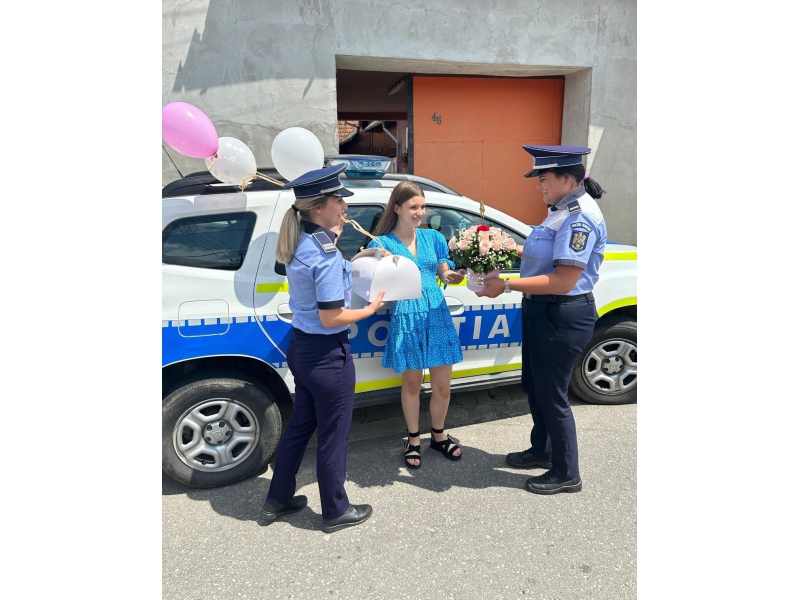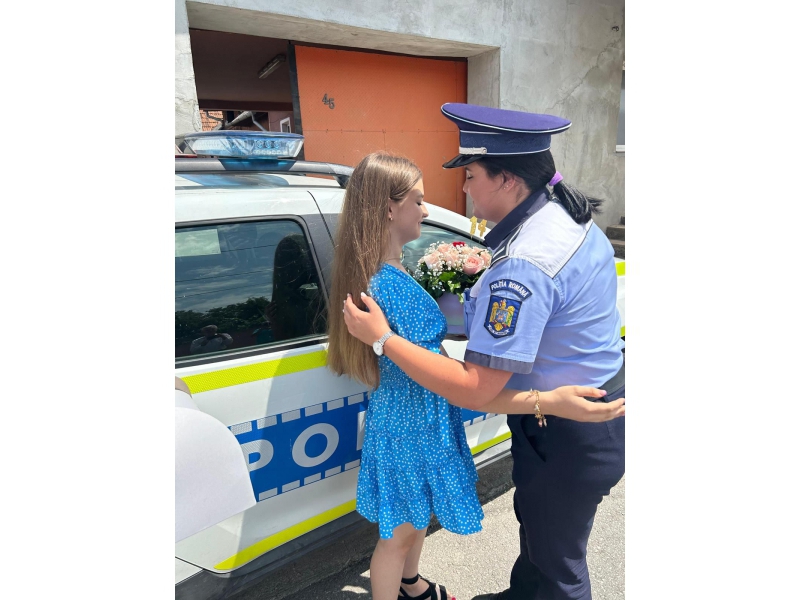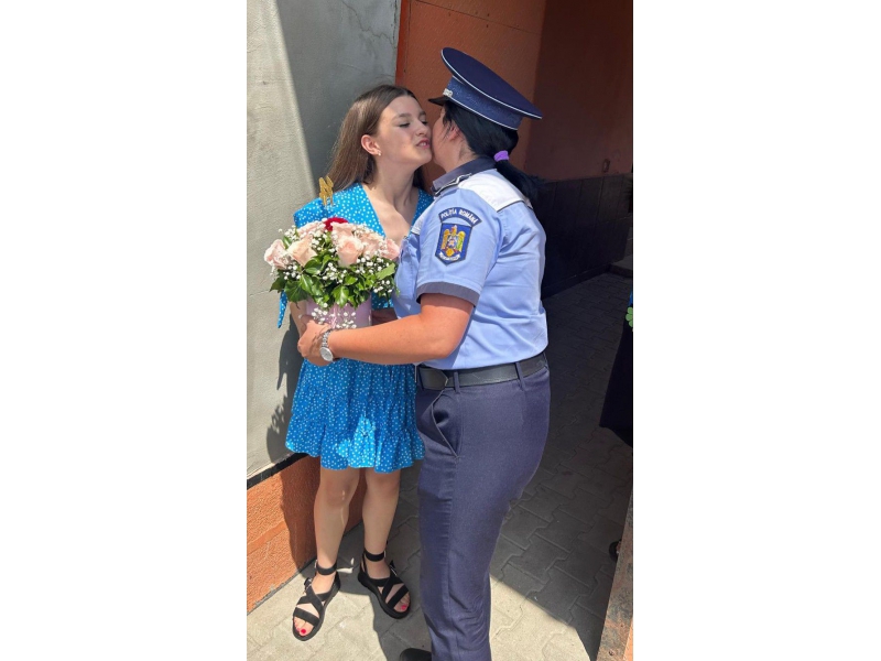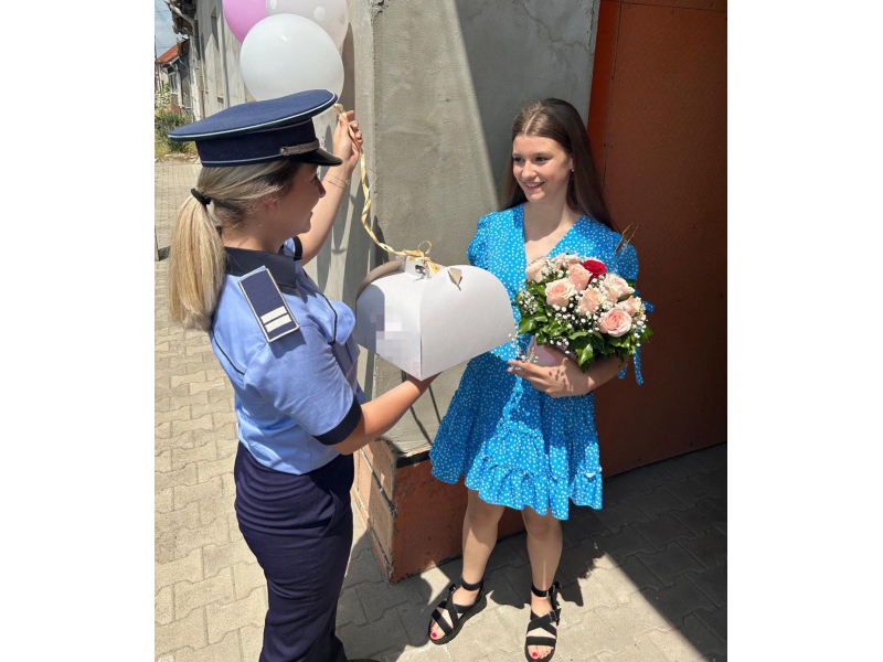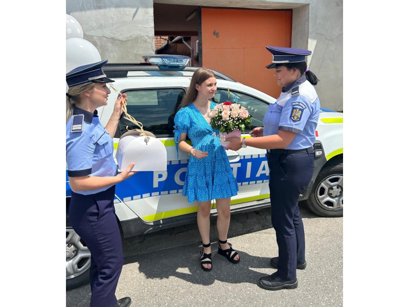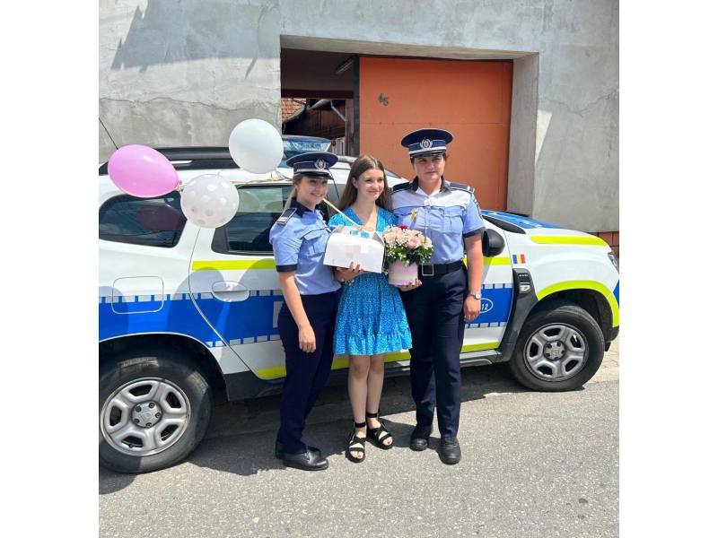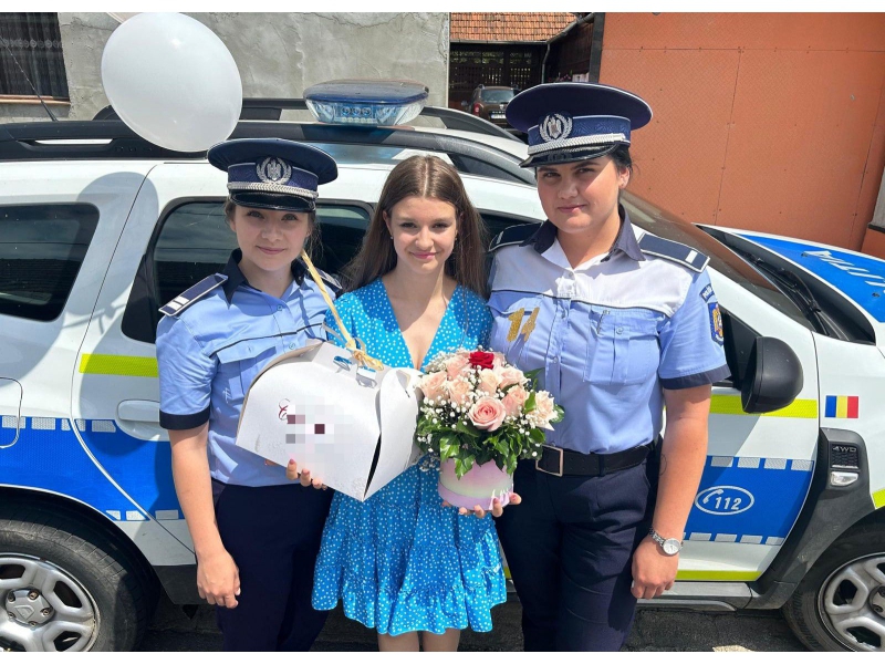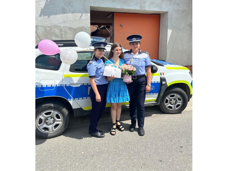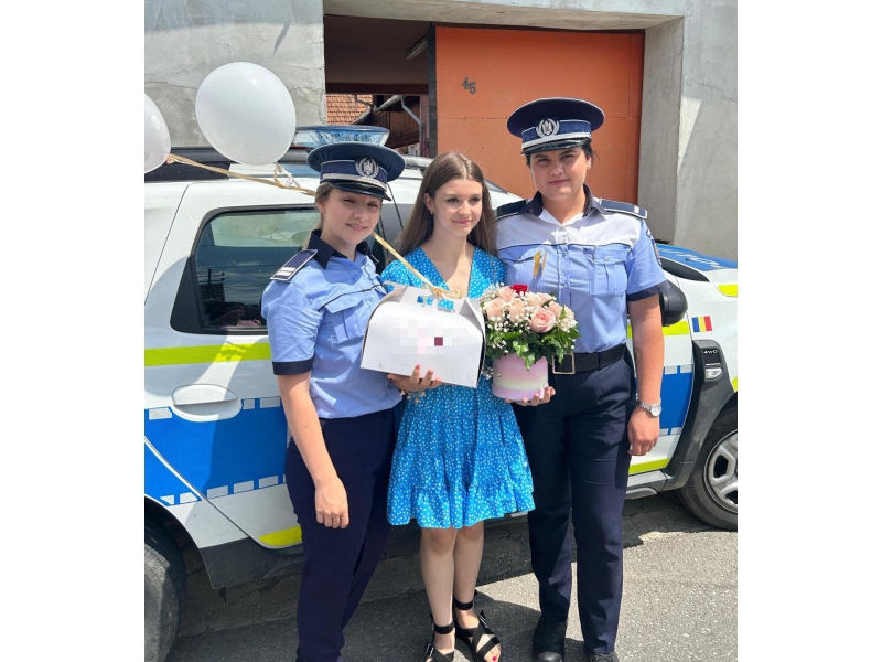 Două polițiste bihorence, din cadrul respectivei secții de poliție, au descins, la orele amiezii, la locuința adolescentei, într-un autoturism de serviciu, „înarmate” cu un buchet de flori, un tort și urări calde, care i-au adus tinerei zâmbetul pe buze și bucurie în suflet.