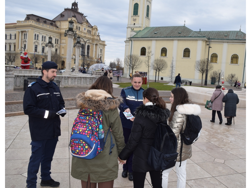 Pe parcursul lunii decembrie a.c., polițiștii Compartimentului de Analiză și Prevenire a Criminalității din cadrul Inspectoratului de Poliție Județean Bihor au acționat alături de polițiștii Serviciului Județean de Poliție Transporturi Bihor și de jandarmi din cadrul Inspectoratului Județean de Jandarmi Bihor pentru a preveni victimizarea cetățenilor prin folosirea necorespunzătoare sau ilegală a obiectelor pirotehnice, dar și pentru a preveni victimizarea prin infracțiuni de furt, specifice perioadei sărbătorilor de iarnă.