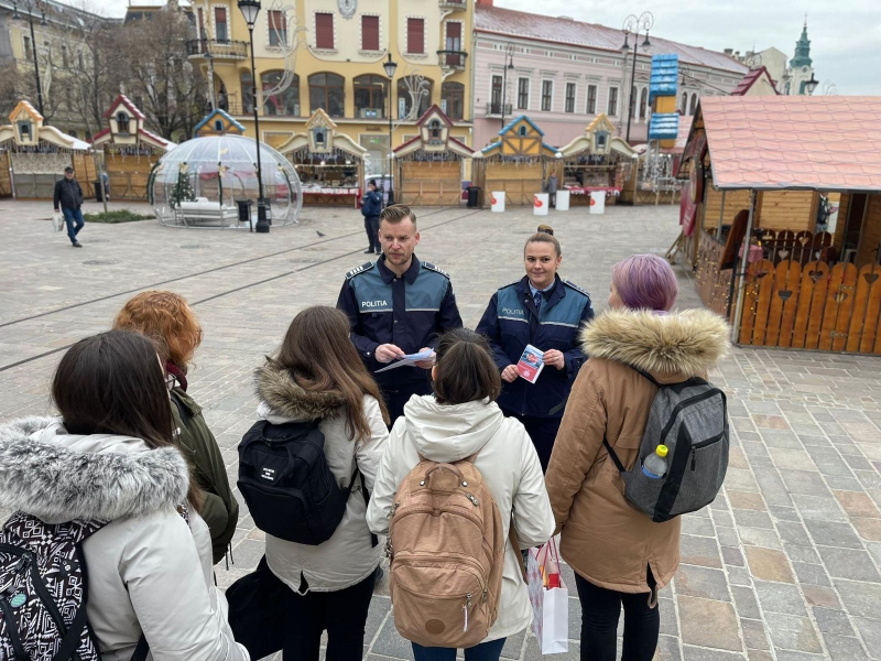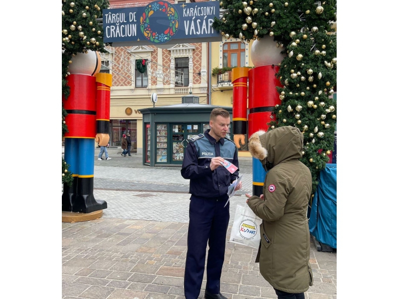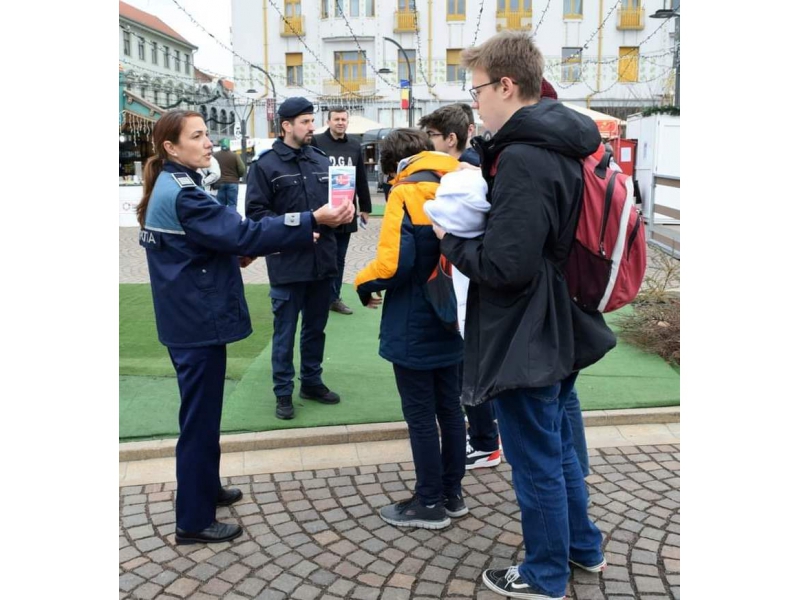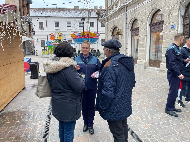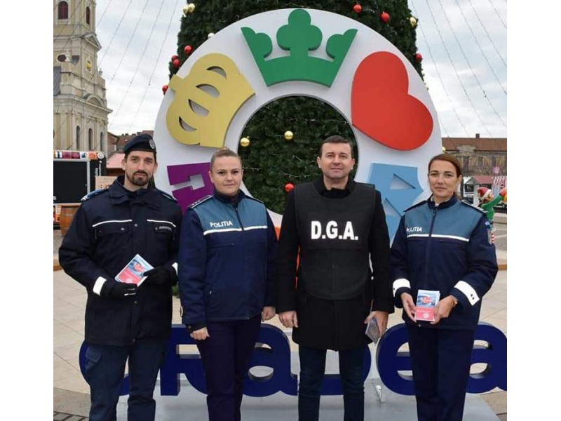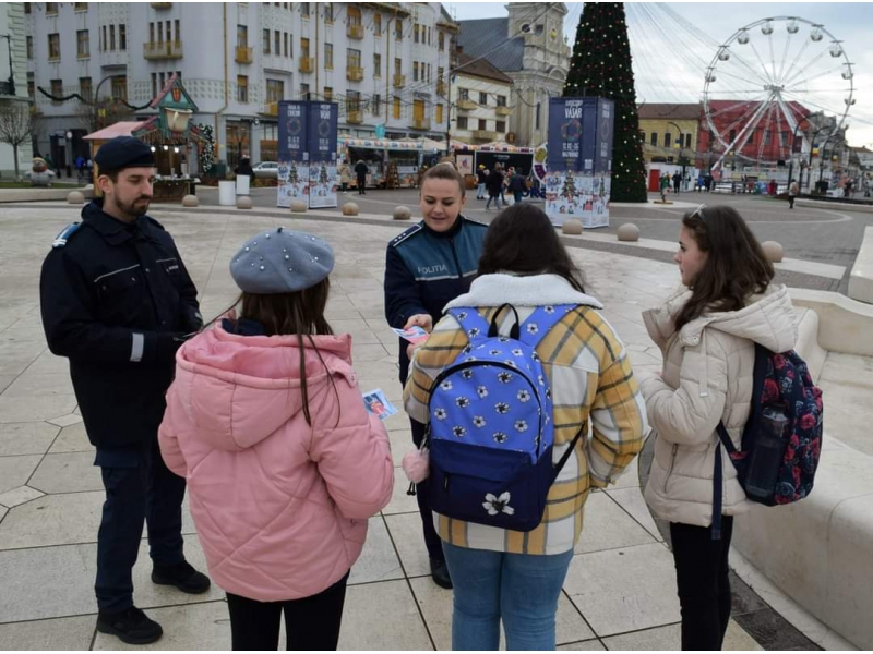 Pe parcursul lunii decembrie a.c., în cadrul campaniei preventive „Sărbători în siguranță!”, polițiștii Compartimentului de Analiză şi Prevenire a Criminalităţii din cadrul Inspectoratului de Poliție Județean Bihor, alături de jandarmi bihoreni au acționat în zonele publice aglomerate din municipiul Oradea, pentru a preveni victimizarea cetățenilor în perioada sărbătorilor de iarnă.
