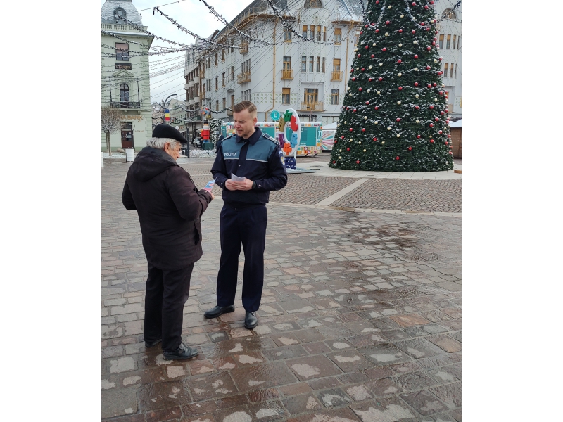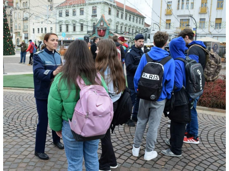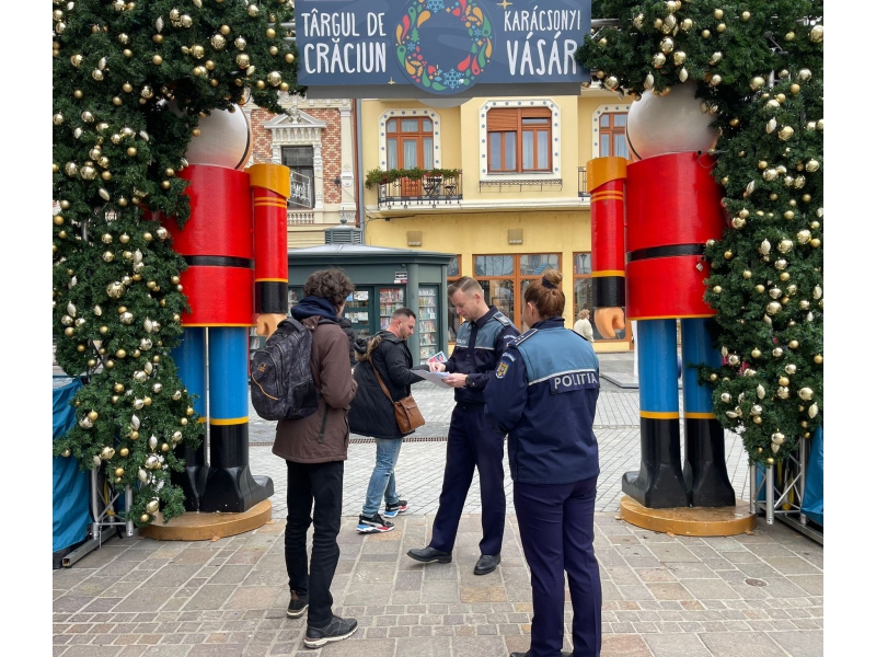 Astfel, polițiștii bihoreni au acționat preventiv în Piața Unirii din municipiul Oradea, la Târgul de Crăciun, în marile centre comerciale, în piețele agroalimentare, în stațiile mijloacelor de transport în comun, precum și la centrele pentru persoane de vârsta a treia (anexăm foto).