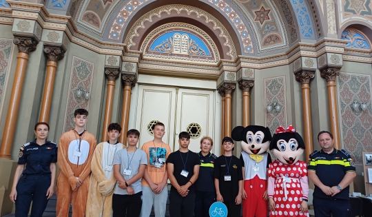 Astfel, azi, polițiștii din Bihor sunt prezenți la evenimentul Caravana cu jocuri! – Festival de joacă, carte și arte, ediția Oradea 2024, destinat promovării jocurilor educative, lecturii, socializării, prieteniei și distracției, organizat în incinta Sinagogii Neologe (Sinagoga Sion).