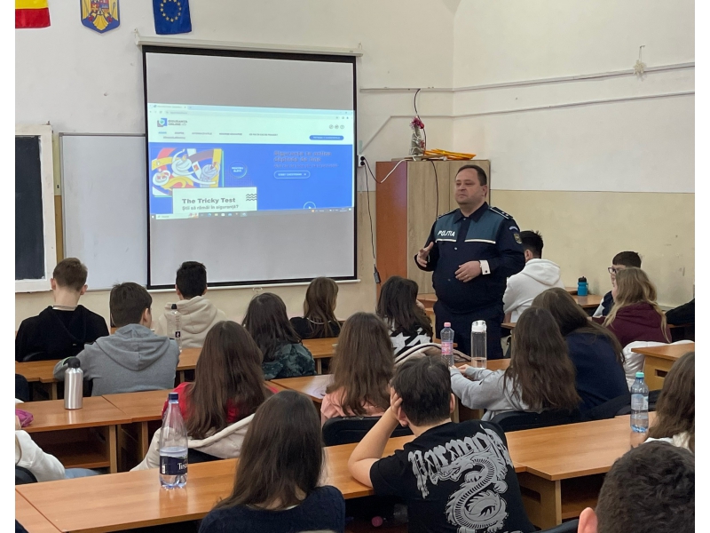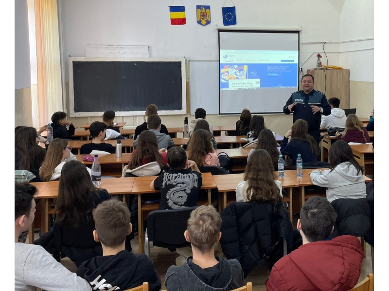 Polițiștii de prevenire bihoreni, alături de elevi, pentru siguranța acestora în mediul online.