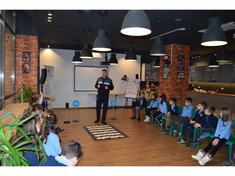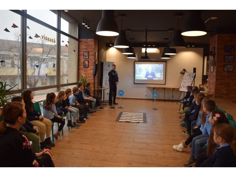 1. Atelier axat pe siguranța rutieră, în cadrul căruia copiii și adolescenții învață, alături de polițiștii din Bihor, principalele reguli de circulație, cum să identifice riscurile din vecinătatea traficului rutier și semnificația indicatoarelor rutiere.