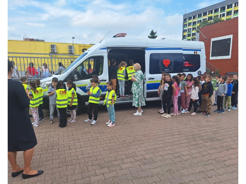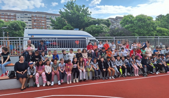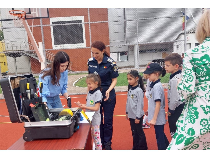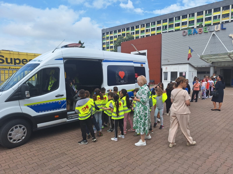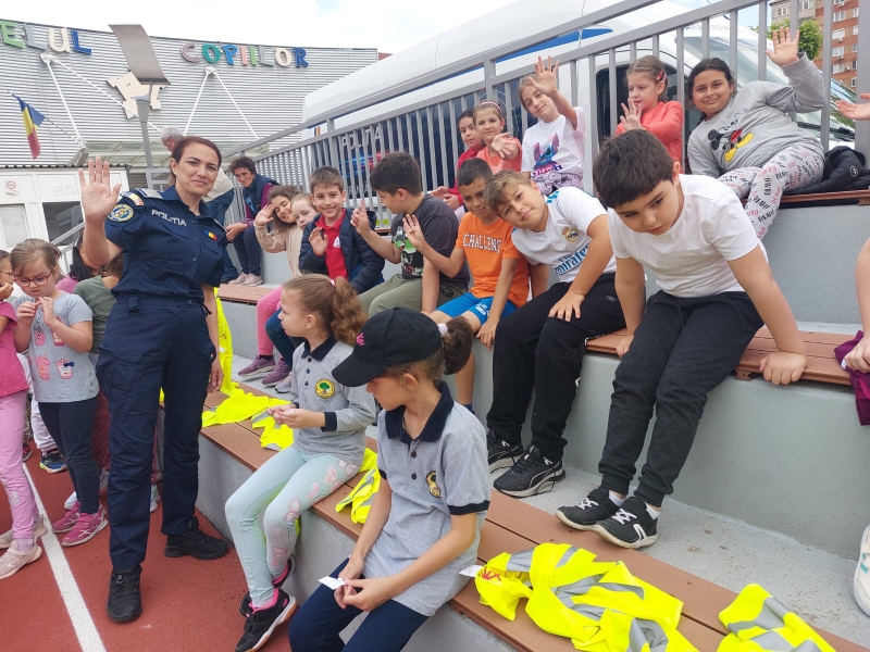 Copiii au avut ocazia să vadă îndeaproape laboratorul mobil de siguranță rutieră, unde au primit recomandări utile de la polițiștii Serviciului Rutier, pentru a preveni victimizarea acestora în trafic.