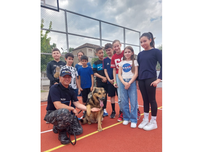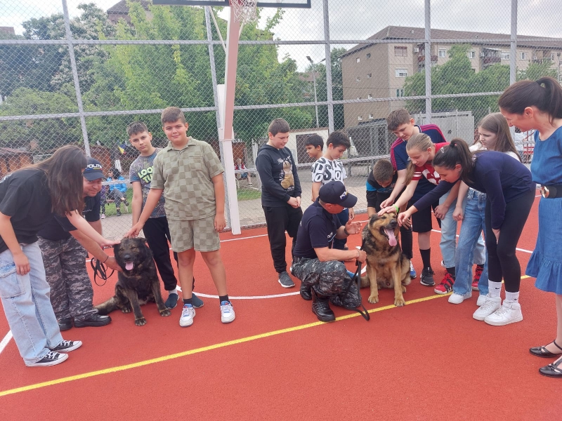 Prin joc, copiii au învățat, alături de polițiști și câinii polițiști, cum să prevină victimizarea acasă, la școală și pe stradă, în cea de-a cincea zi a Săptămânii Prevenirii Criminalității.