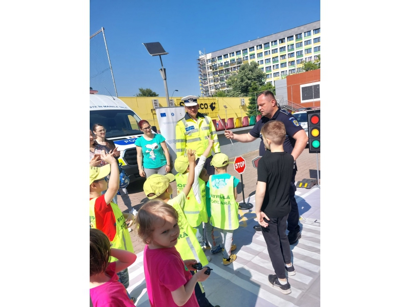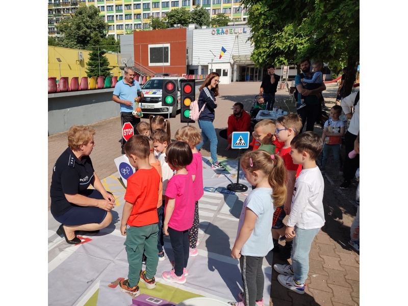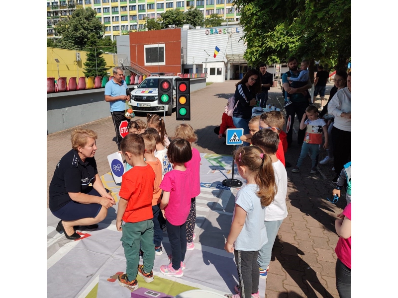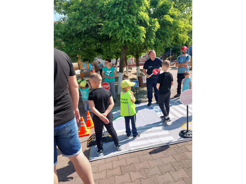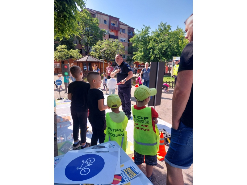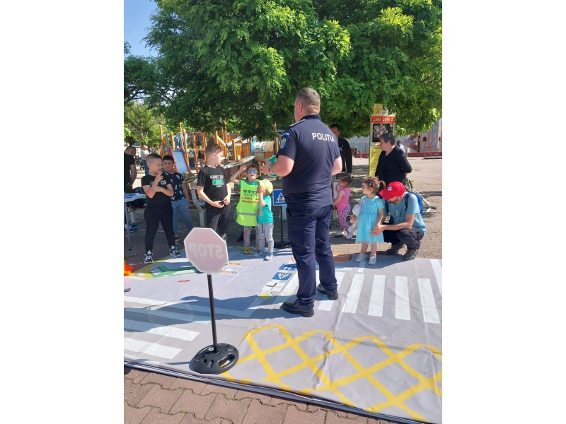 Totodată, poliţiştii bihoreni au prezentat laboratorul de siguranță rutieră, i-au angrenat pe copii într-o serie de concursuri atractive, precum „Desenăm, ne jucăm, reguli noi învăţăm!”, concurs de desene pe asfalt, destinat copiilor cu vârste între 5 și 10 ani, în cadrul căruia participanții au ilustrat, cu creta pe asfalt, noțiuni dobândite de circulație rutieră.